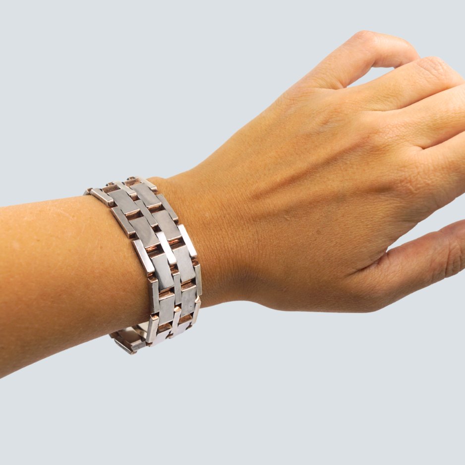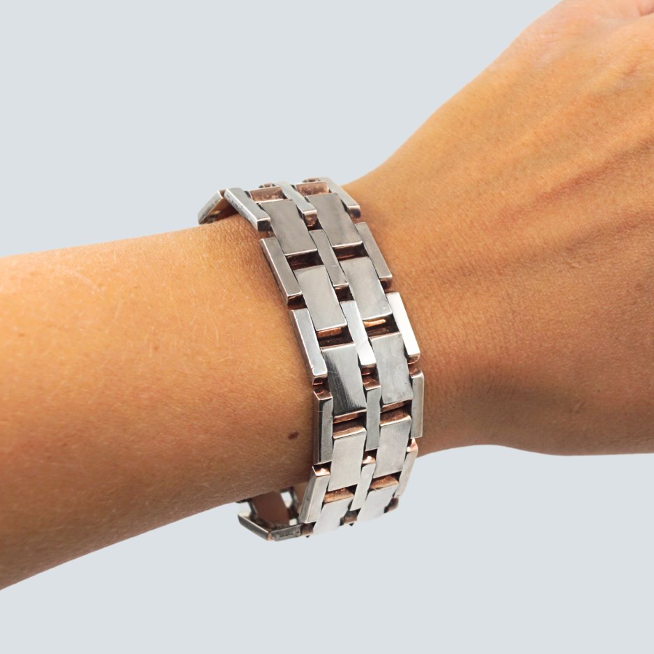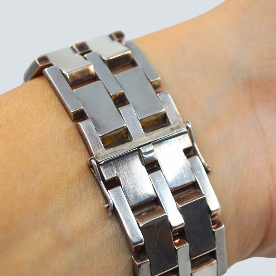 A. Michelsen; A silver bracelet from around 1970. With clasp and two safety clasps.