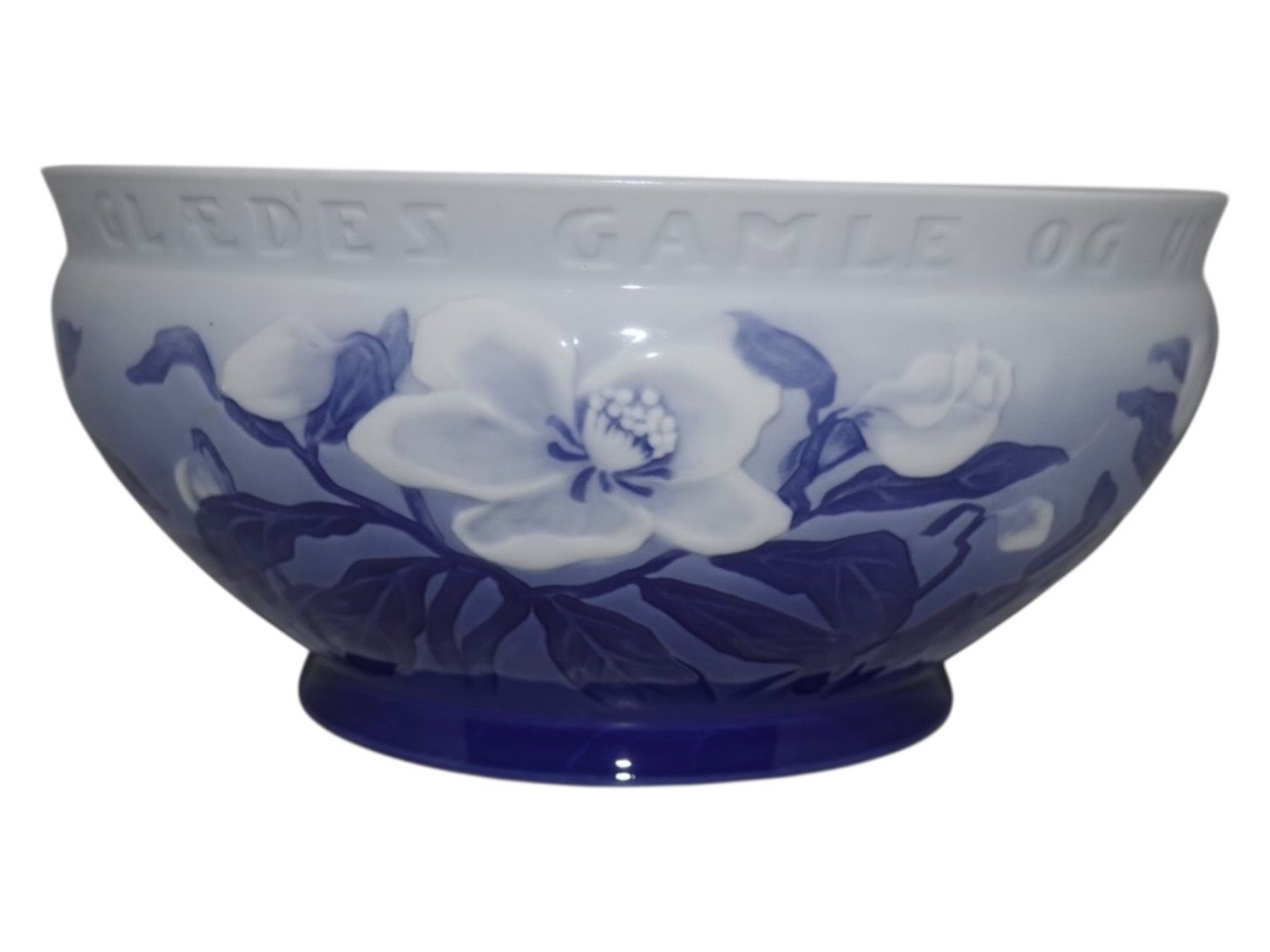 Bing & Grondahl Christmas Rose, rare large bowl with Christmas carol text on side: "JULEN HAR BRAGT VELSIGNET BUD - NU GLÆDES GAMLE OG UNGE".