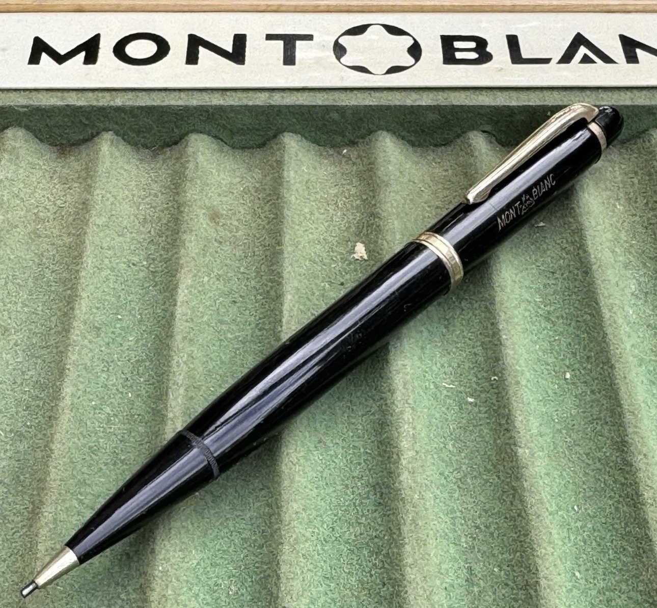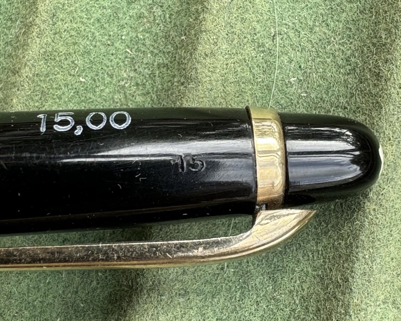 NEVER USED - Vintage Black Slim Montblanc no. 15 Pencil Made In Germany. Original danish Price In d.kr. On the top. 15,00 can easy be removed. “Gold” In the MONTBLANC letters On the top. In fine working condition. No damages or repairs. Ready to be used. Measures: 13,5 cm