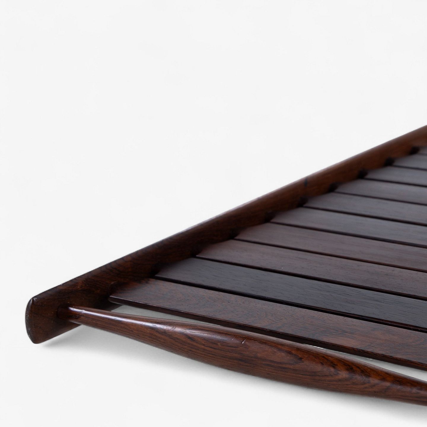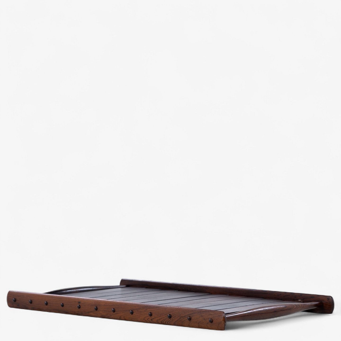 'Xylophone' serving tray in Rio rosewood with slats and handles.