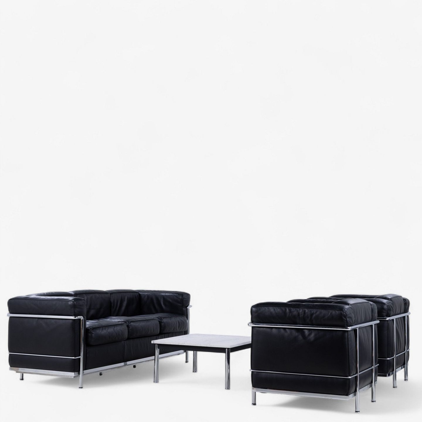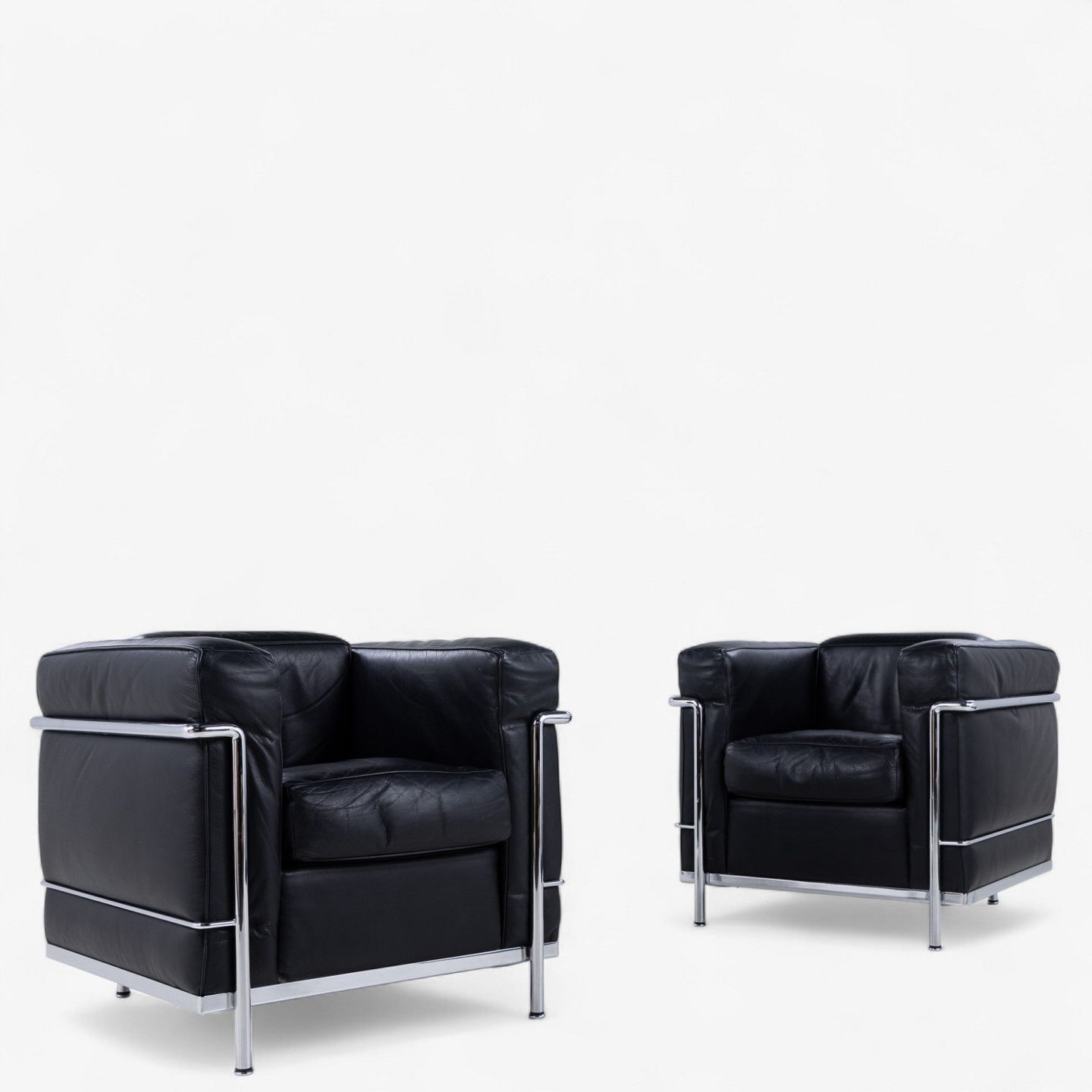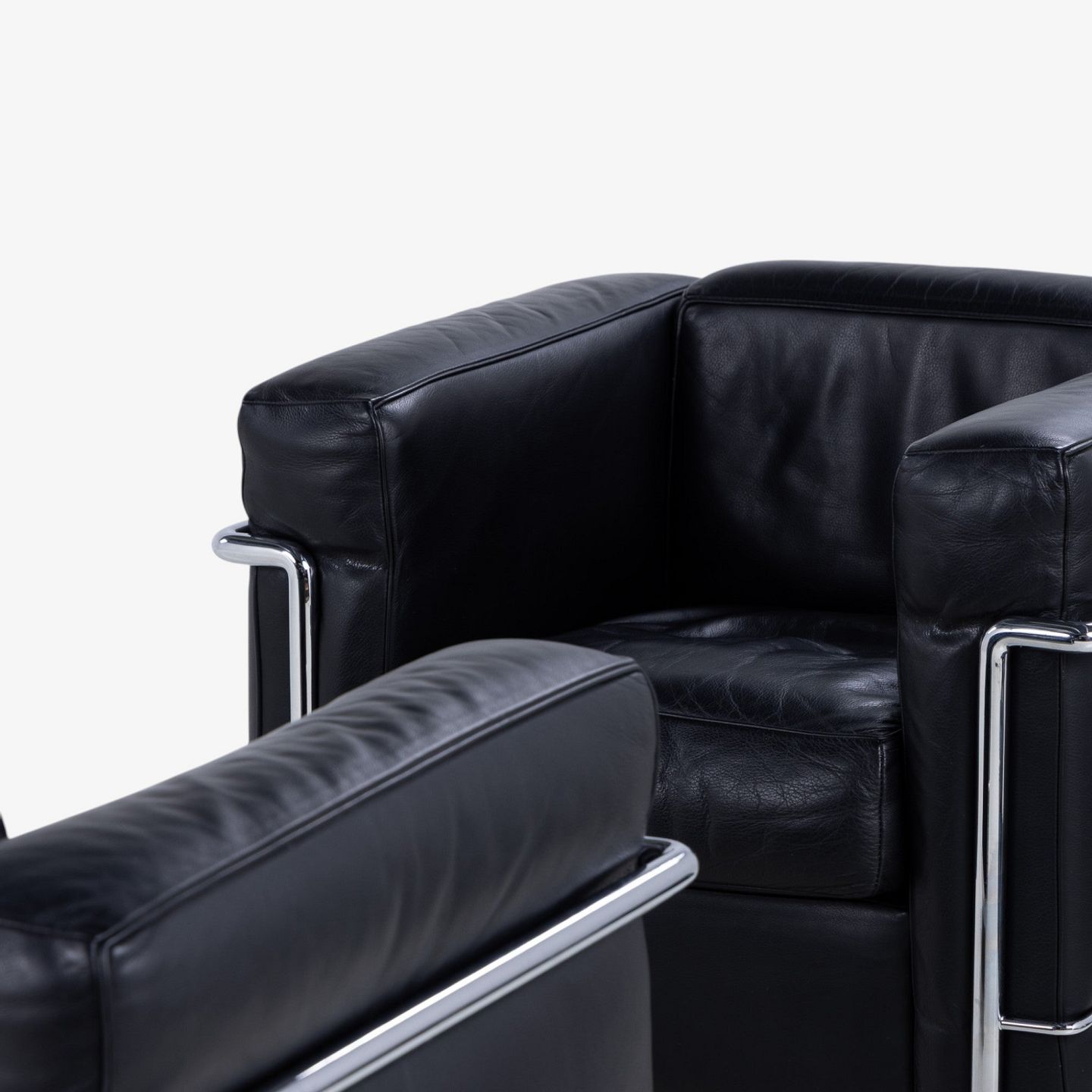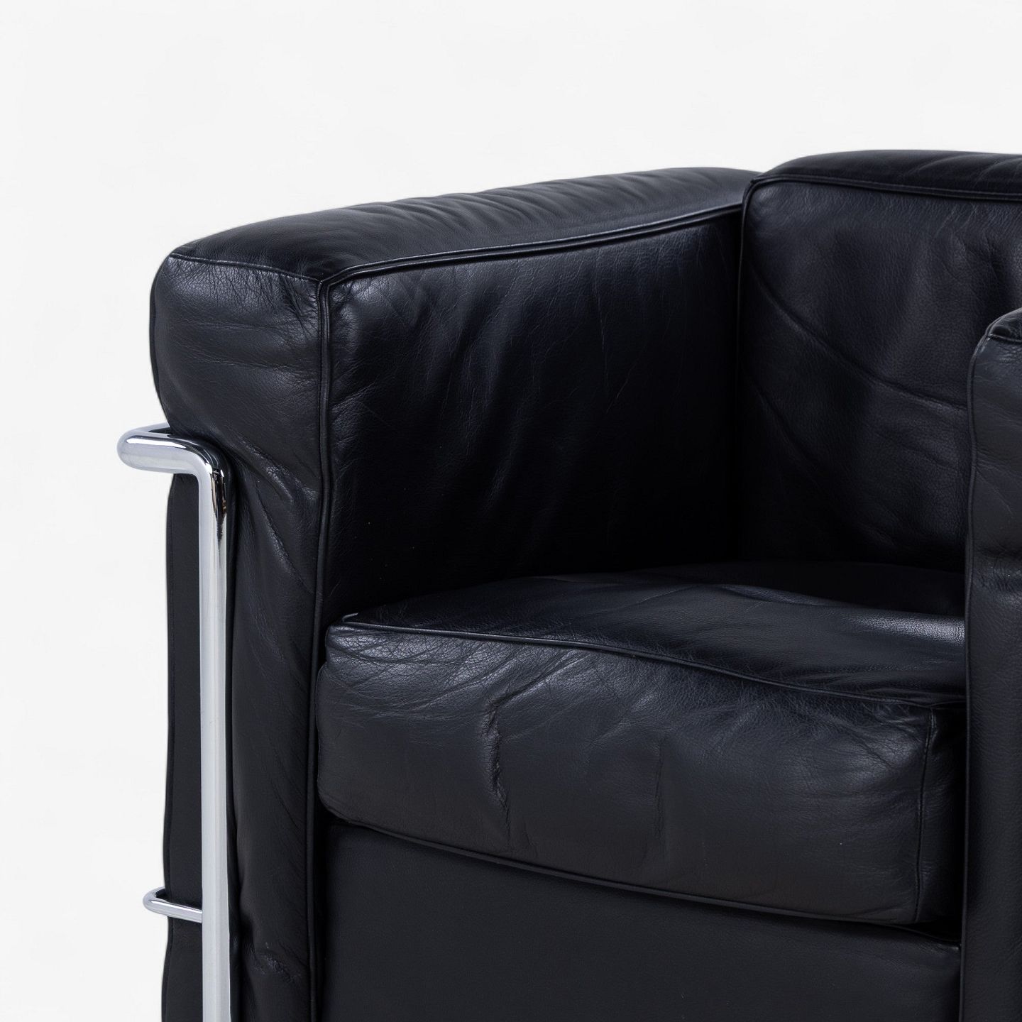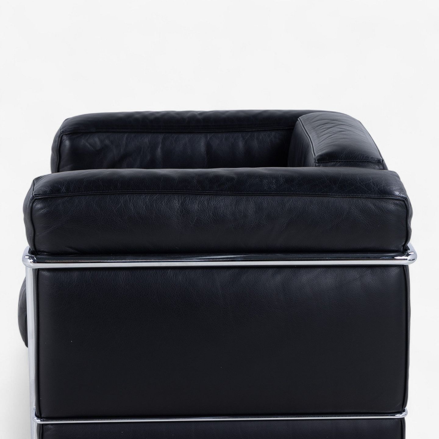 LC 2 - Armchair in original black leather with steel frame. Manufacturer's stamp.