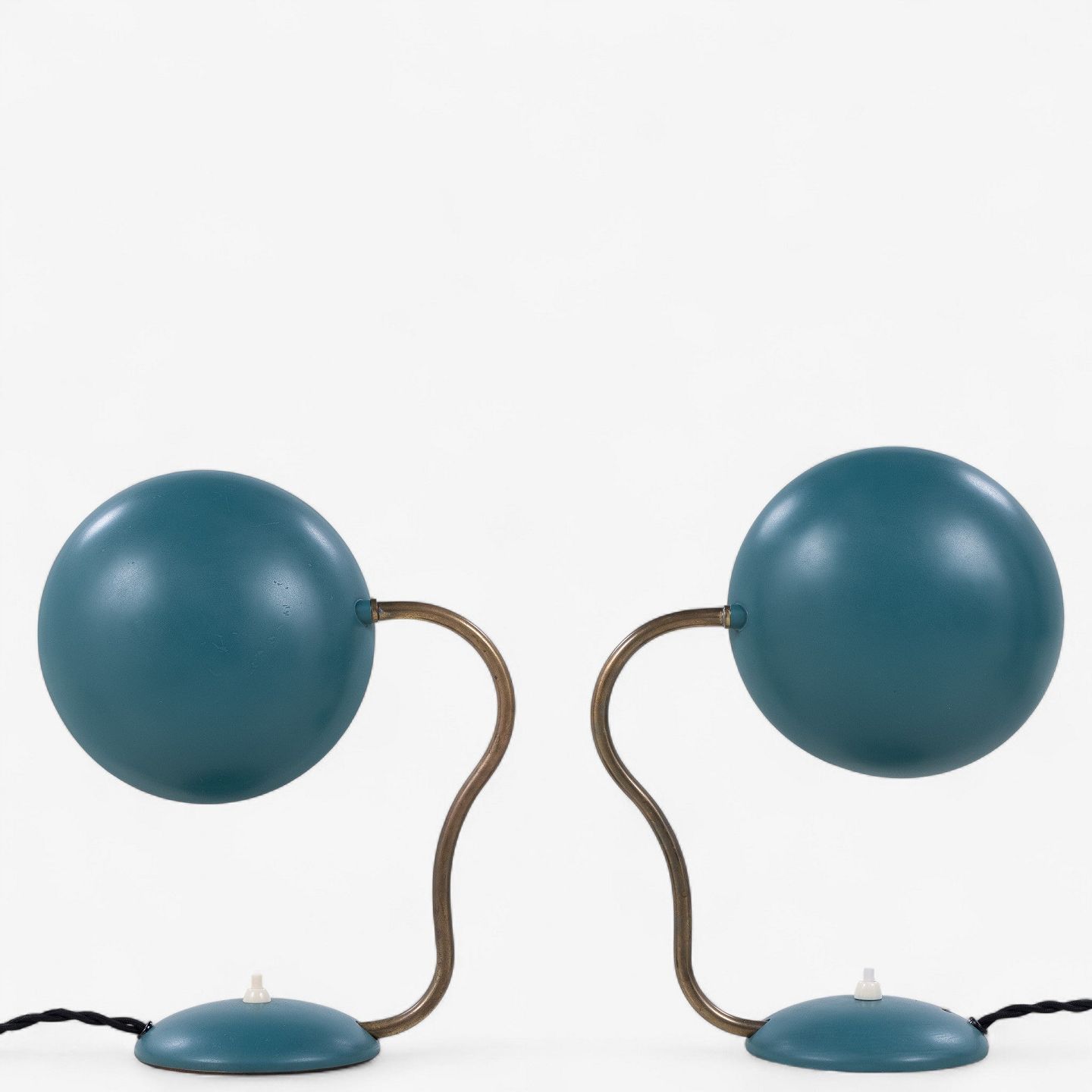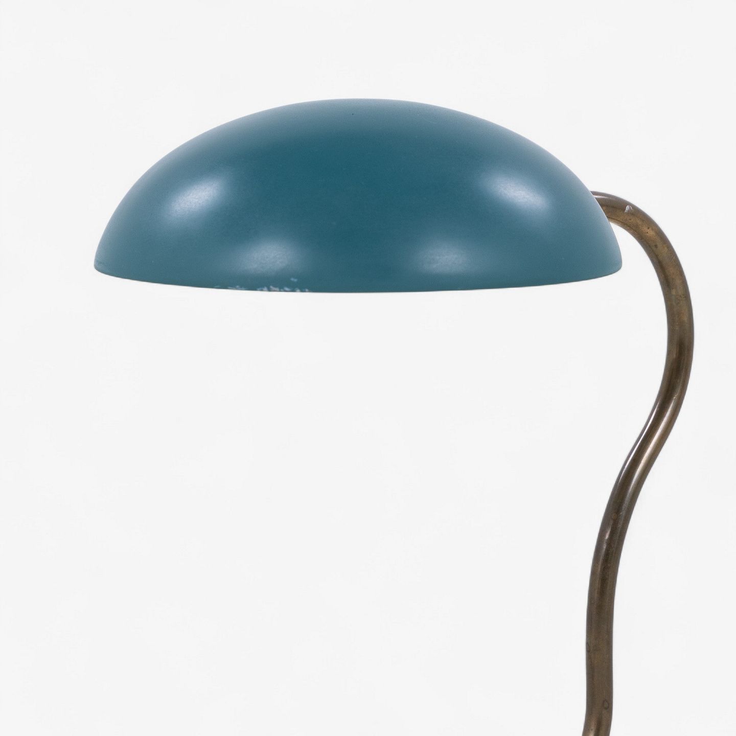 Model E1325 - Table lamp in green lacquered metal with adjustable brass arm.