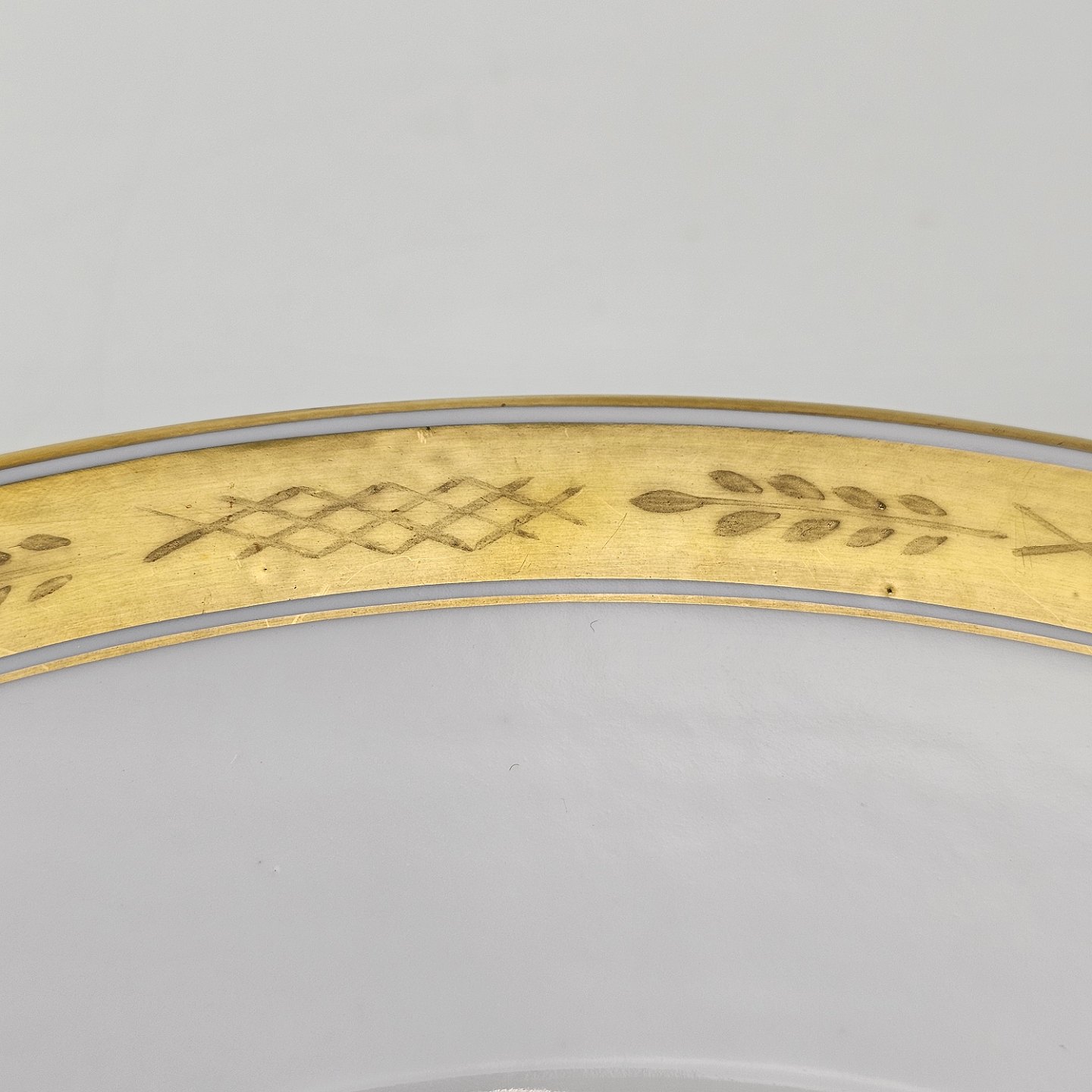 Stel nr. 607 er i hvidt porcelæn og har en guldkant med bladværk