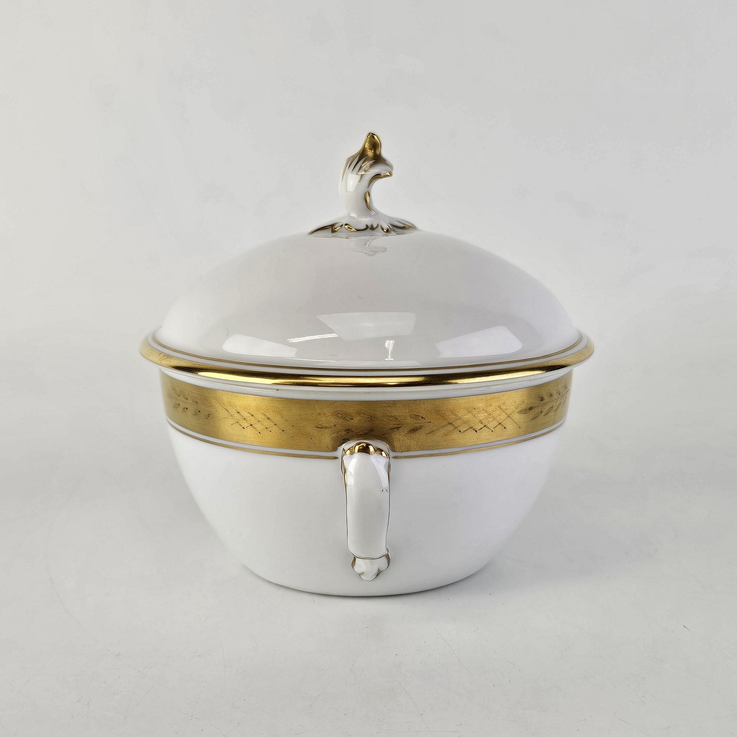 Stel nr. 607 er i hvidt porcelæn og har en guldkant med bladværk