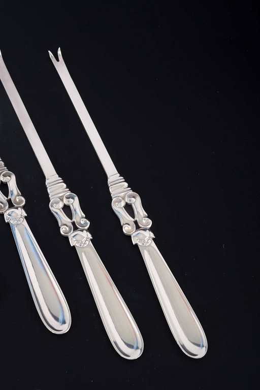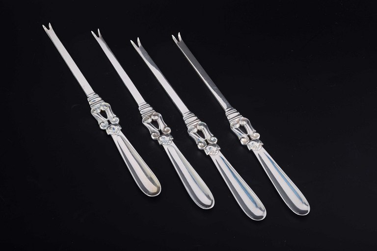 Elegant lobster forks in the classic “Acorn / Konge” pattern, designed by Johan Rohde in 1915. Decorated with the characteristic acanthus leaf and acorn motif.