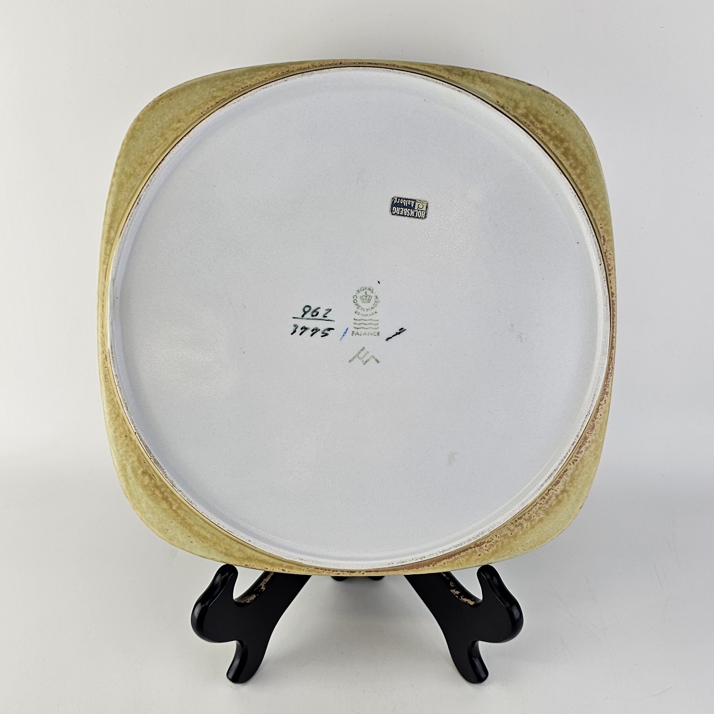 Firkantet fad i hvid fajance fra serien Baca med abstrakt blomstermotiv i brune, sorte og gyldne nuancer