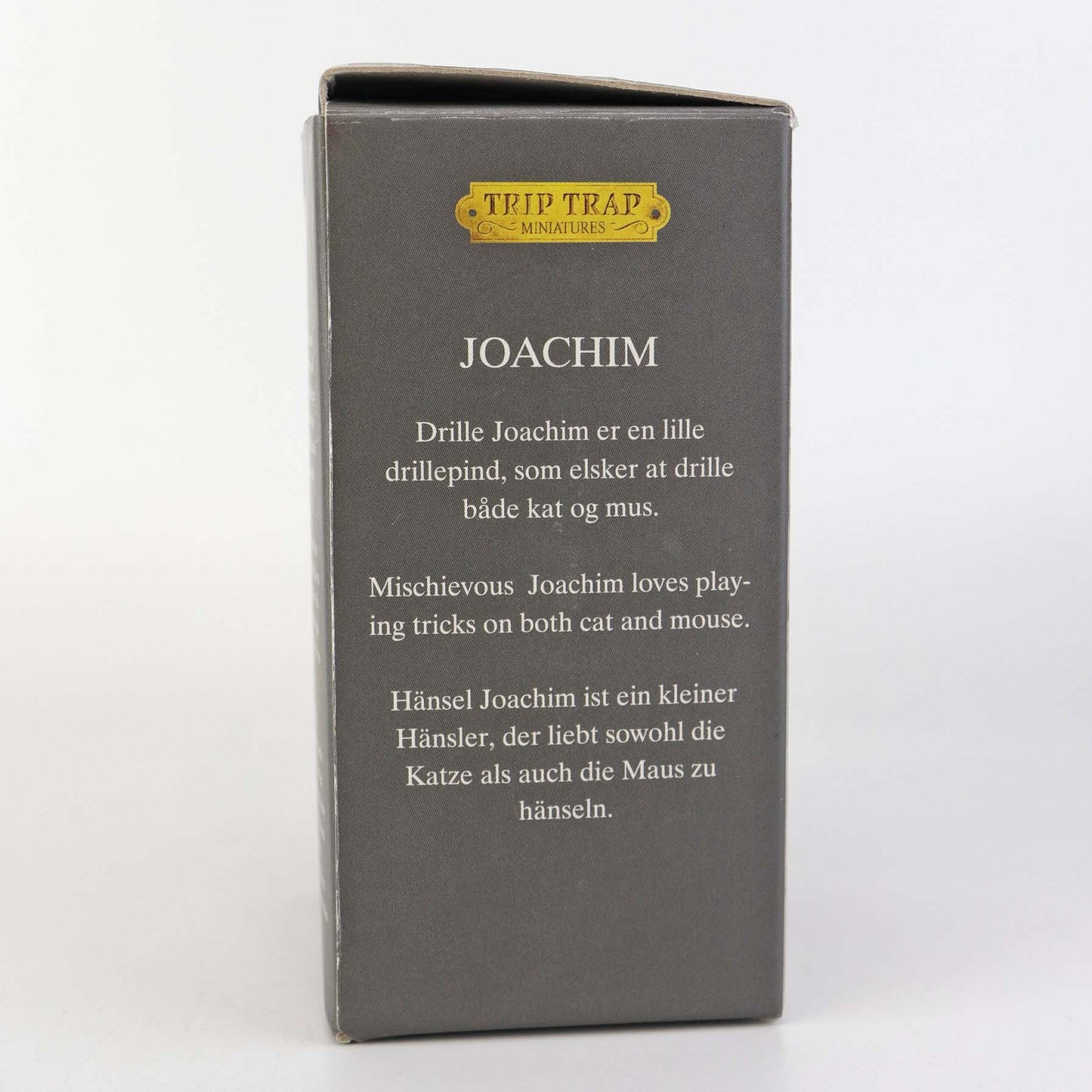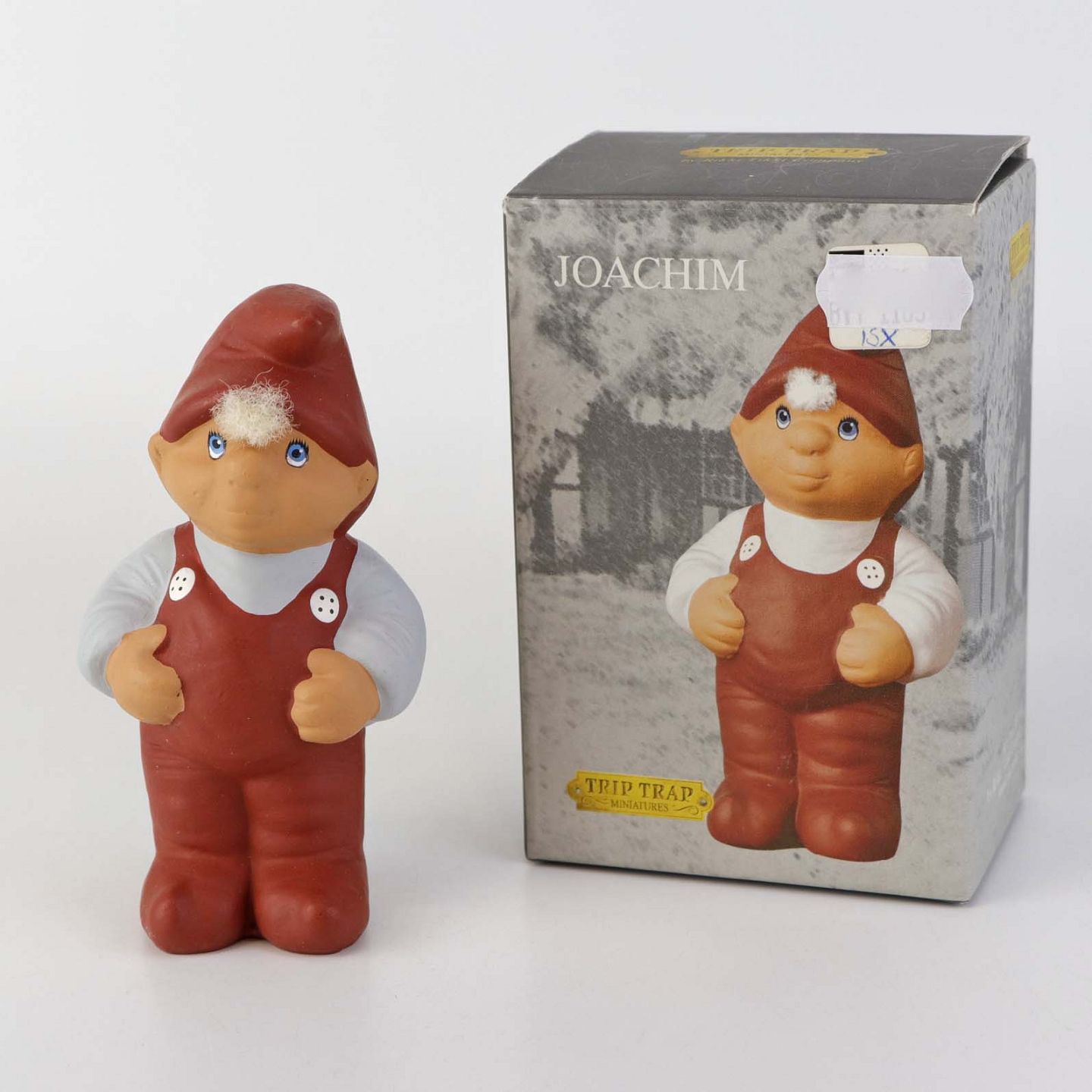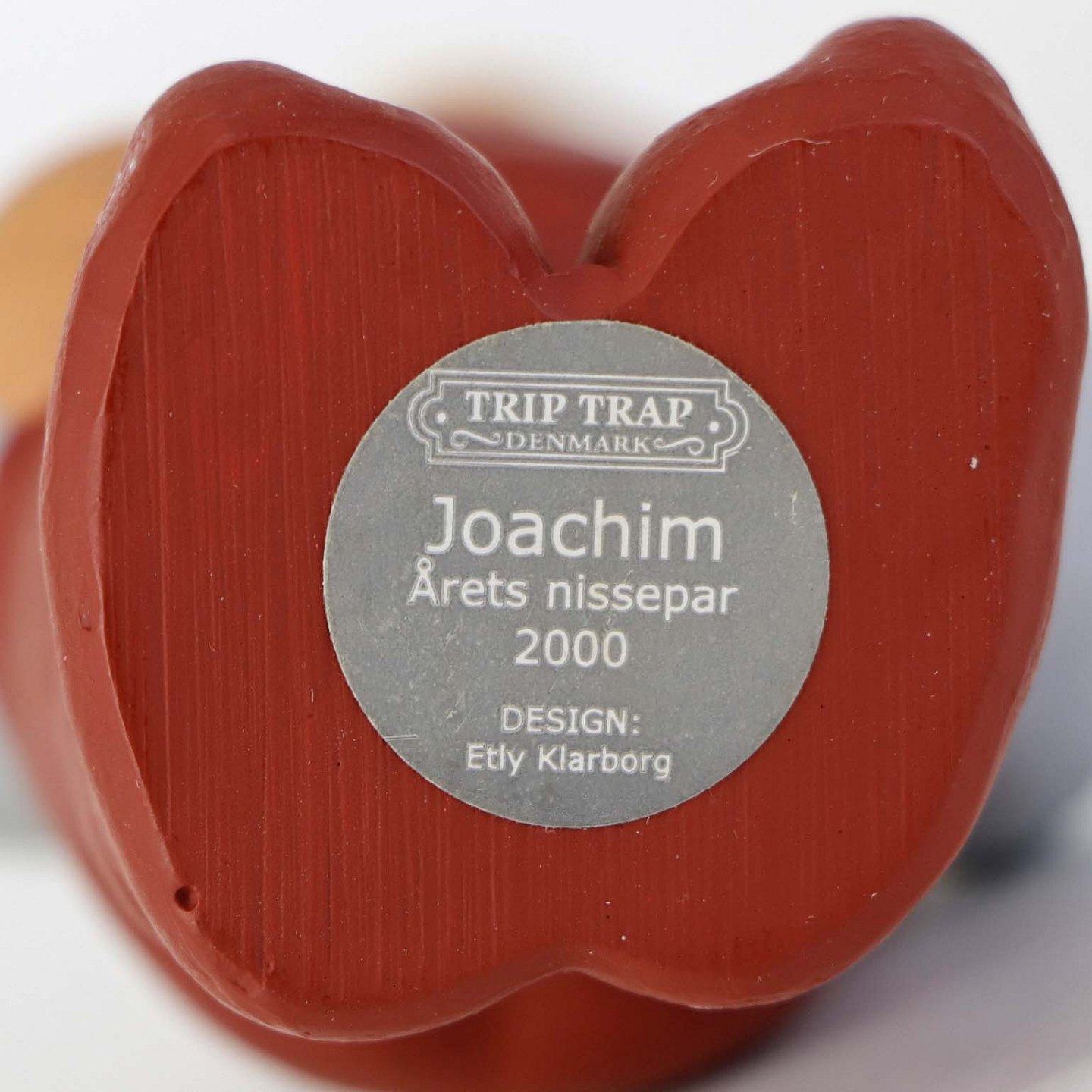 Text available in Danish: Figur med motiv af nissen Joachim, som er den ene figur af årets nissepar år 2000. Figuren er fra serien Klarborg jul og kommer med original boks.