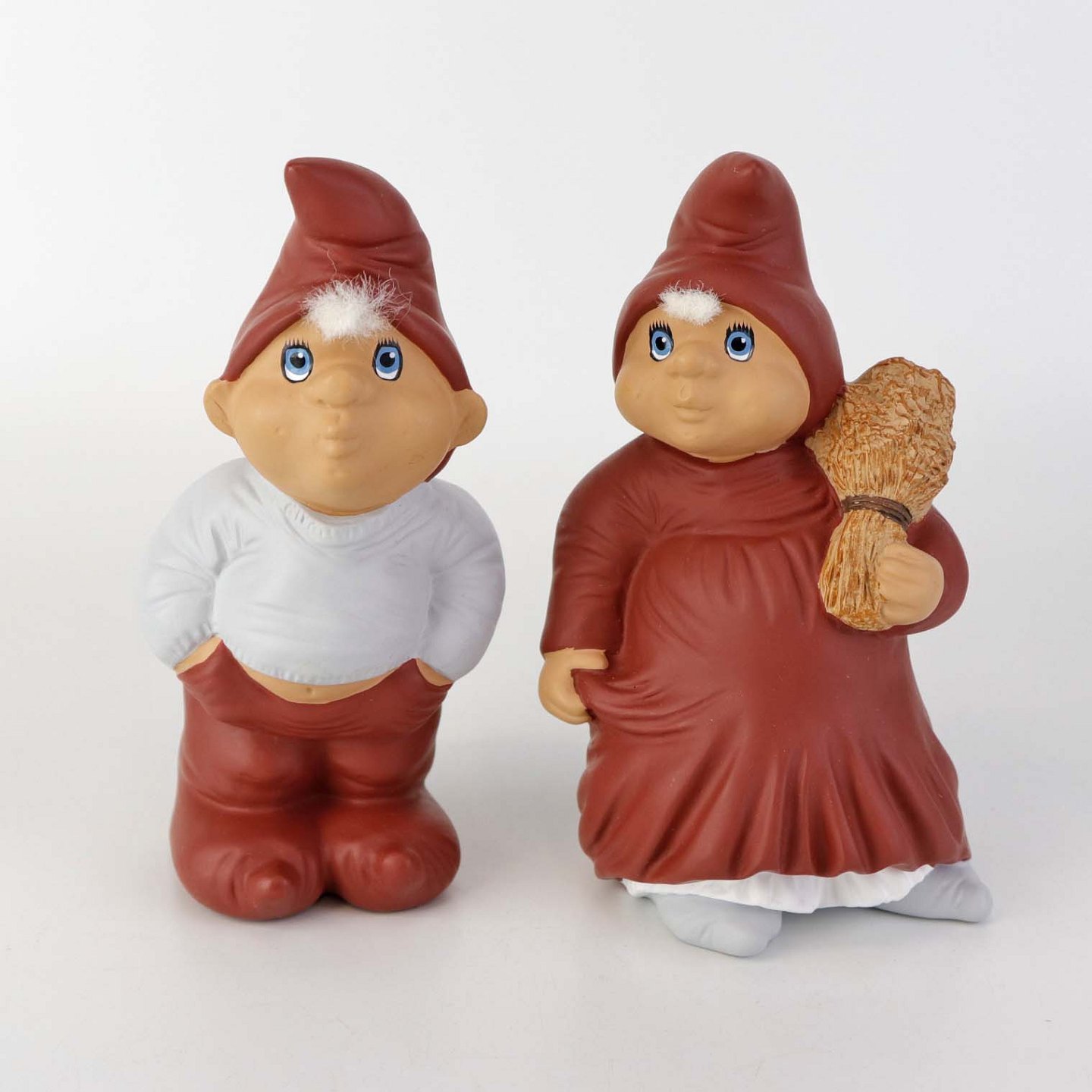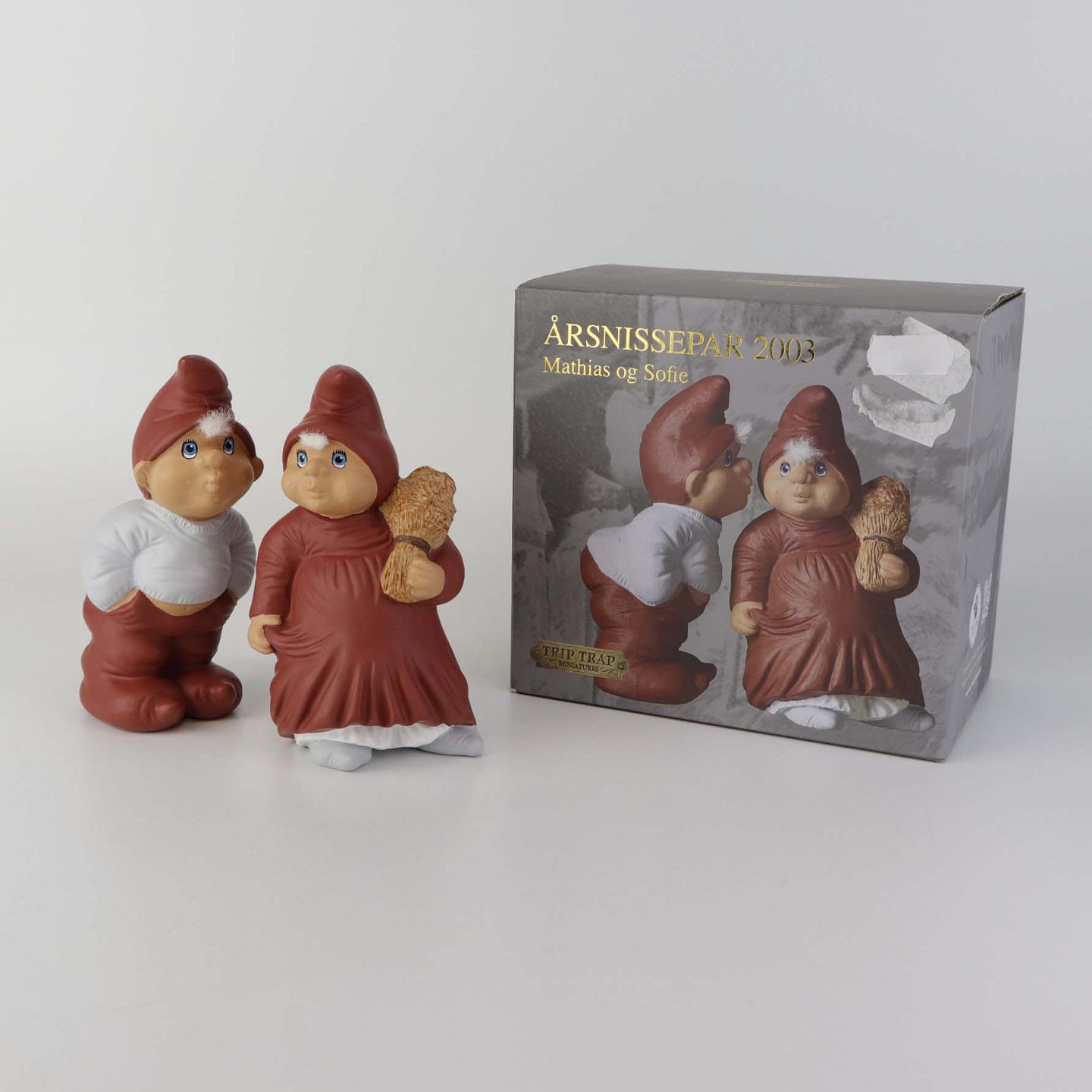 Text available in Danish: Figursæt med motiv Mathias og Sofie, som er årsnissepar fra år 2003 fra serien Klarborg jul. Figurene kommer med original boks.