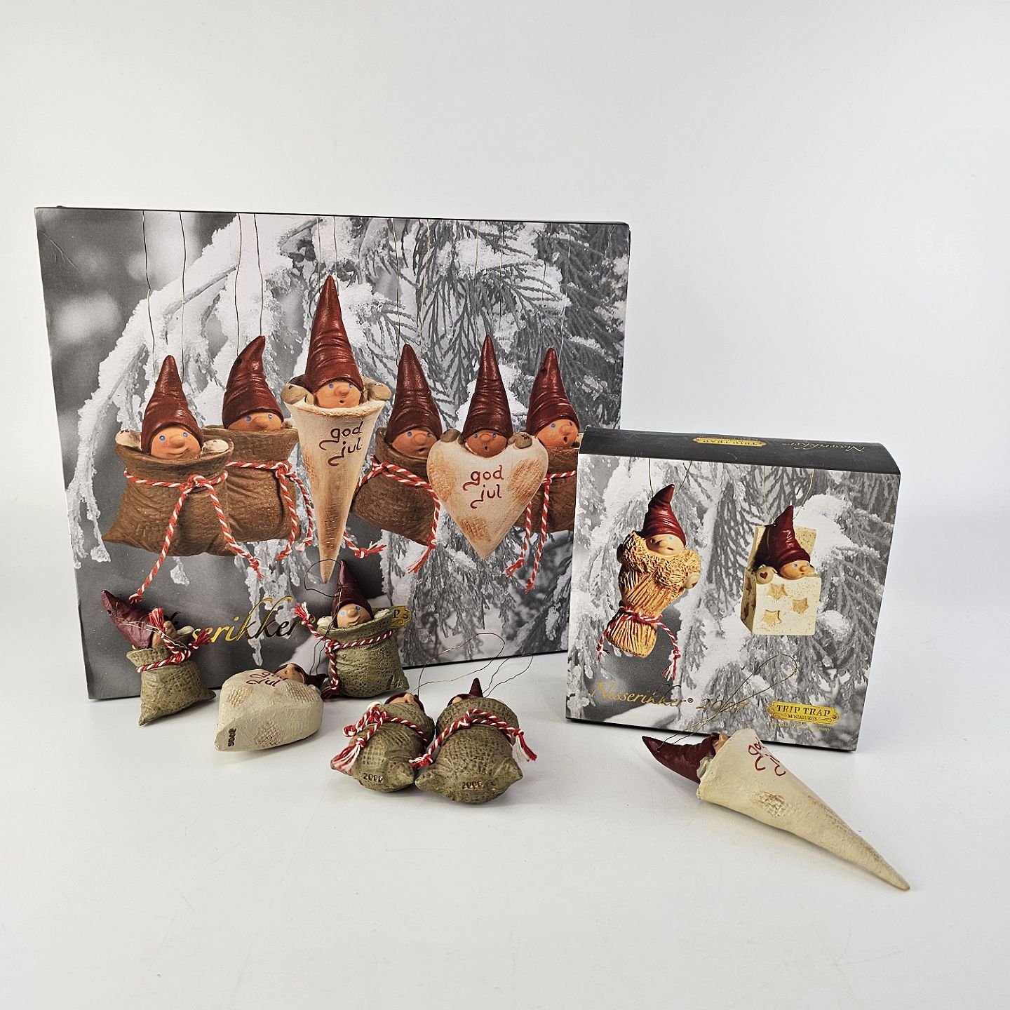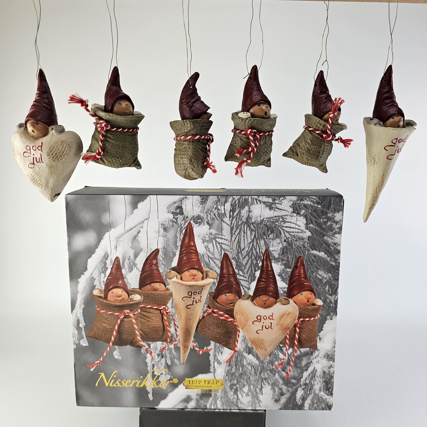Text available in Danish: 2 æsker med små nisser til ophæng, begge med original kasse