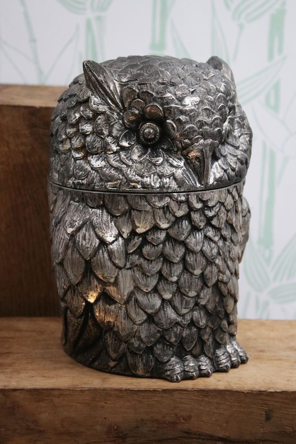 Delicious Italian ice cream bucket designed by Mauro Manetti in the shape of an owl silver-plated pewter from the 60s...