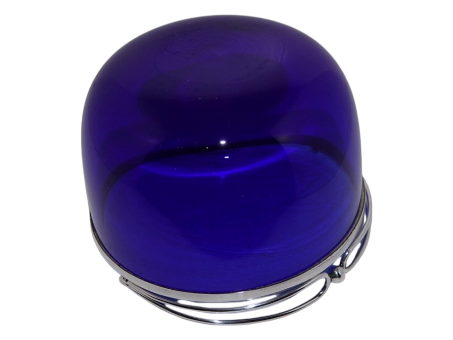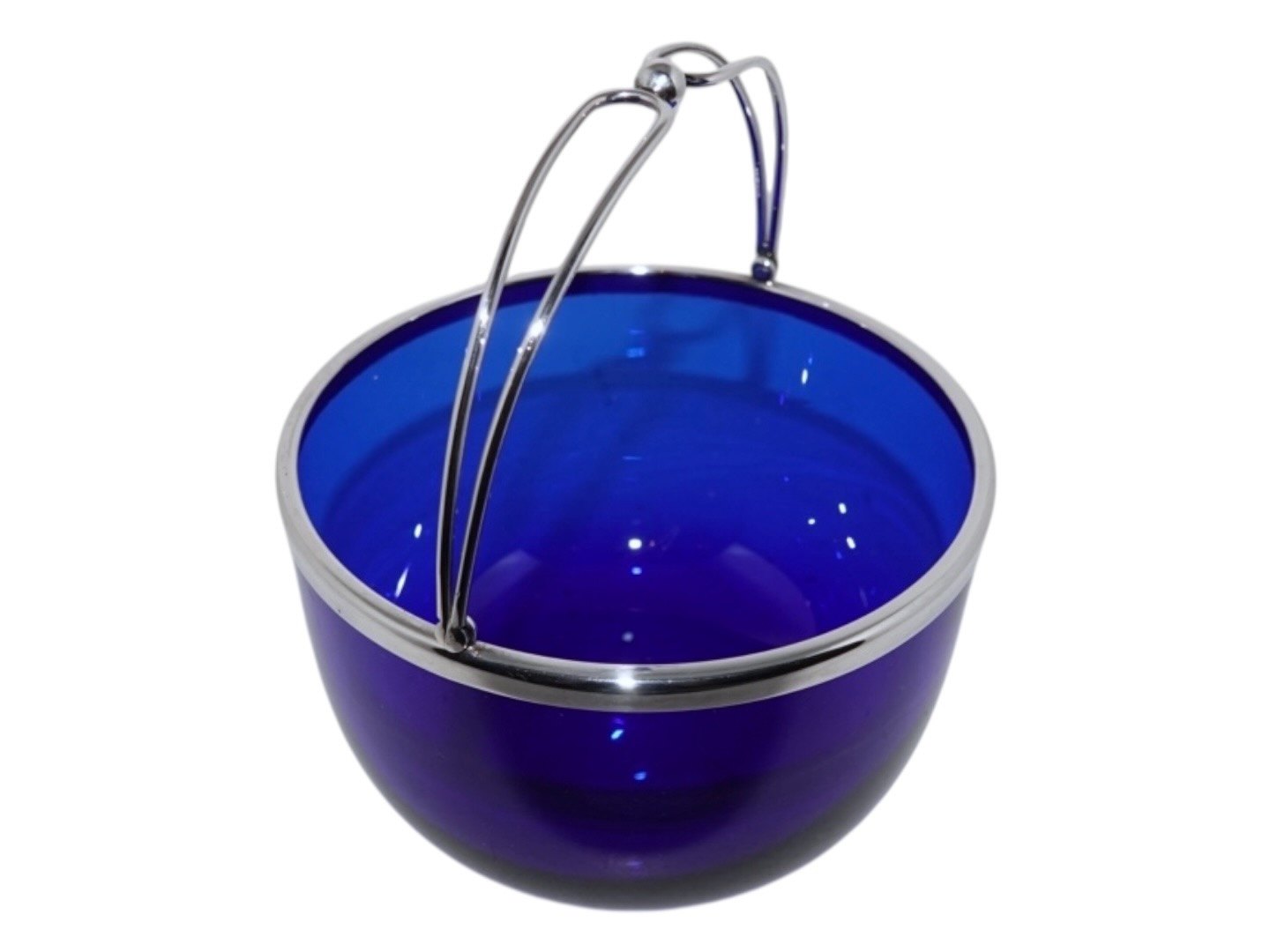 Holmegaard blue glass sugar bowl with silver edge and handle. It is from the 1950'es.