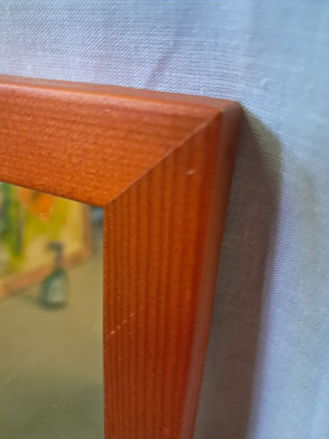 Spejl i massivt og bejdset fyrretræ, fra 1980erne.