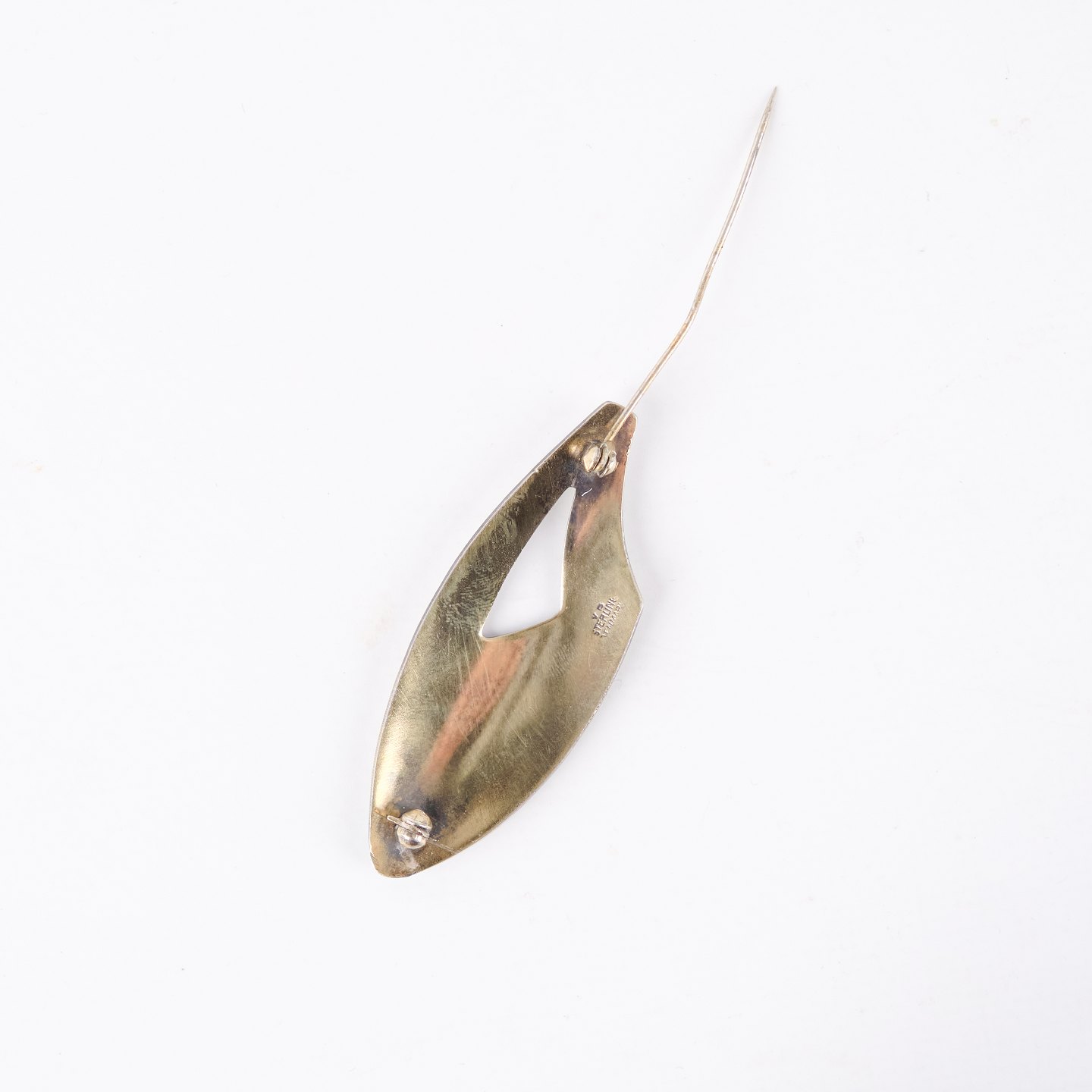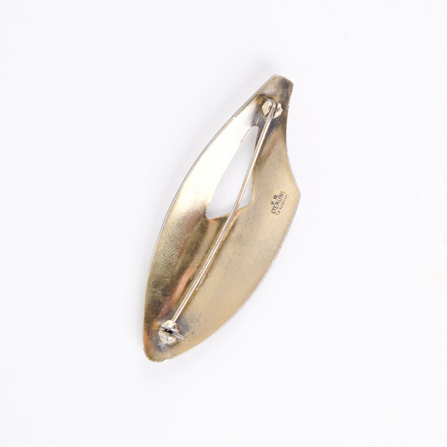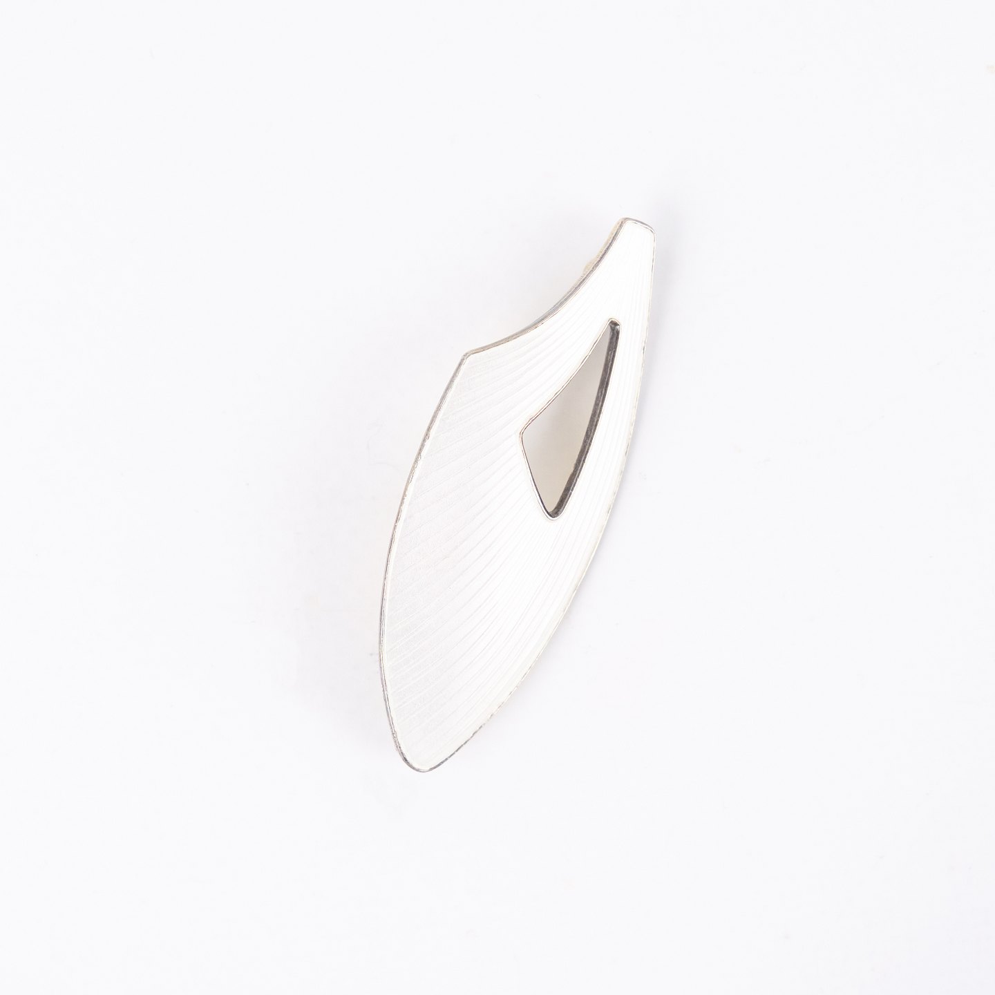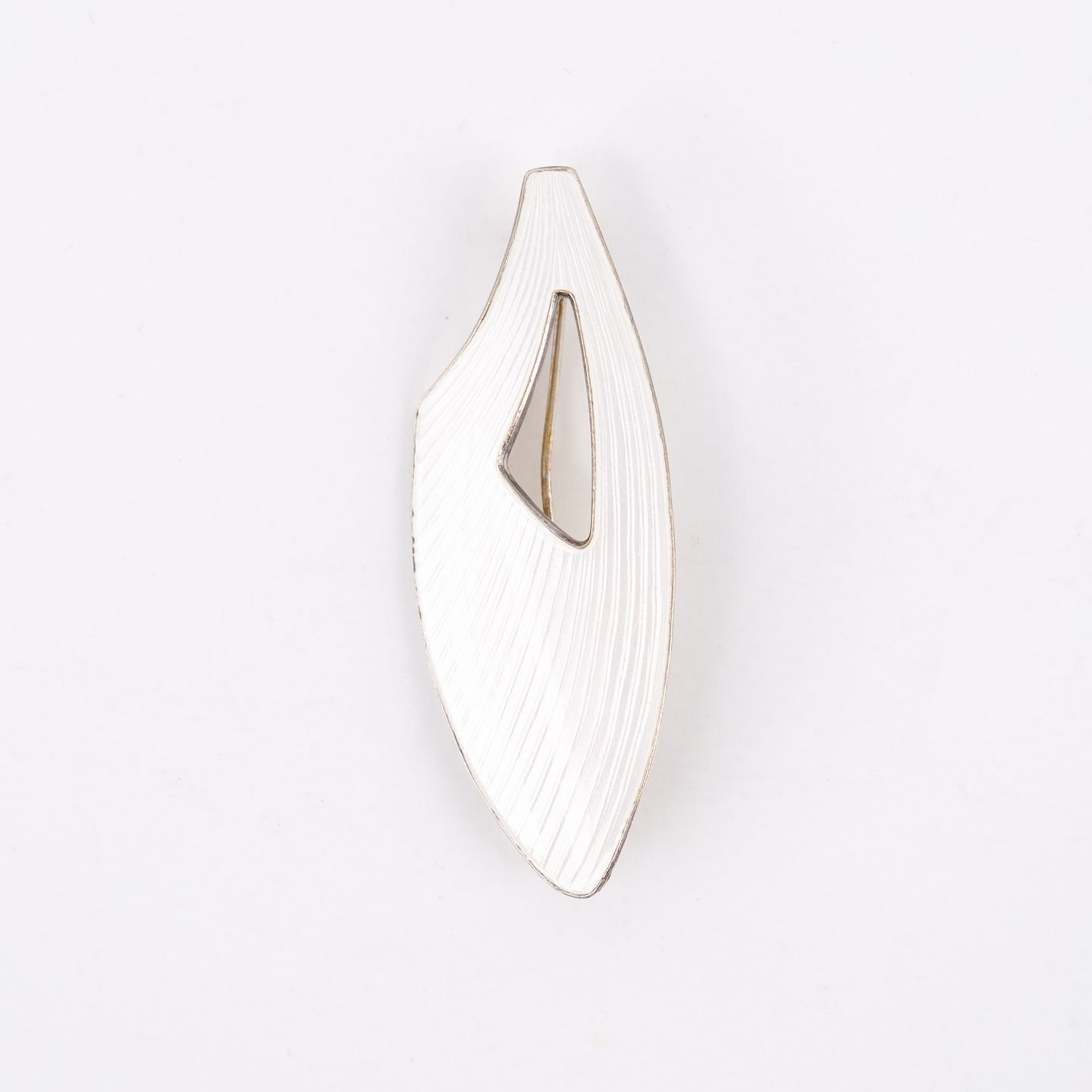 Brooch – White Enamel – Stamped V.R Sterling Denmark – L: 6 cm, W: 2 cm