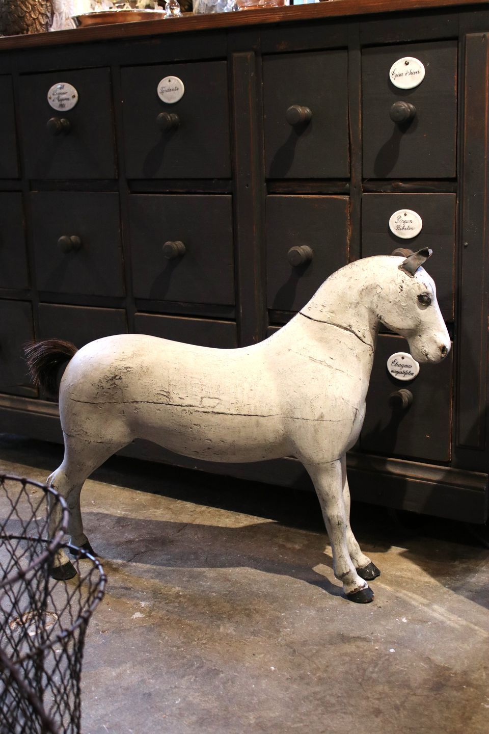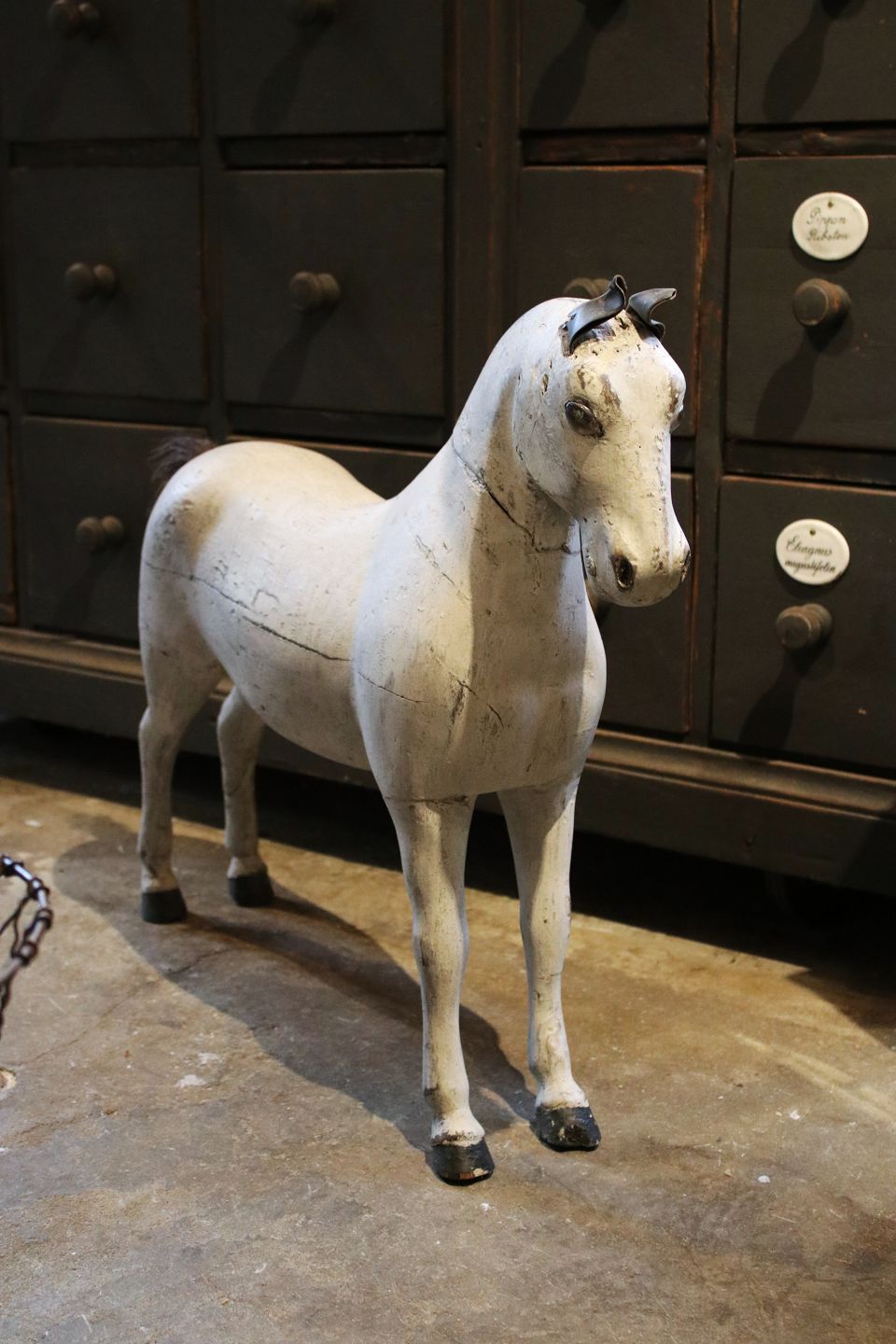 Swedish 19th century wooden horse with fine patinated grey/white colour...
