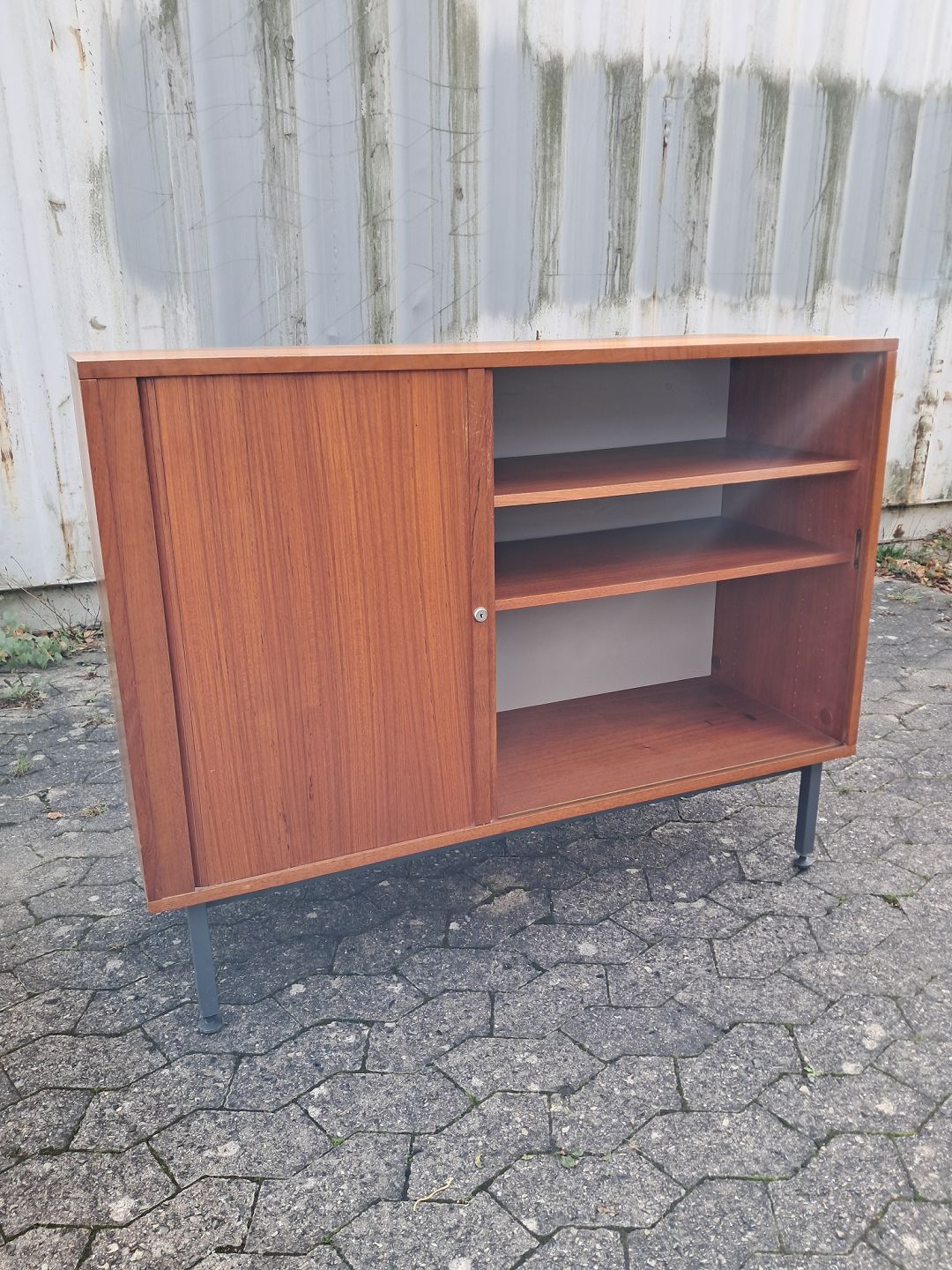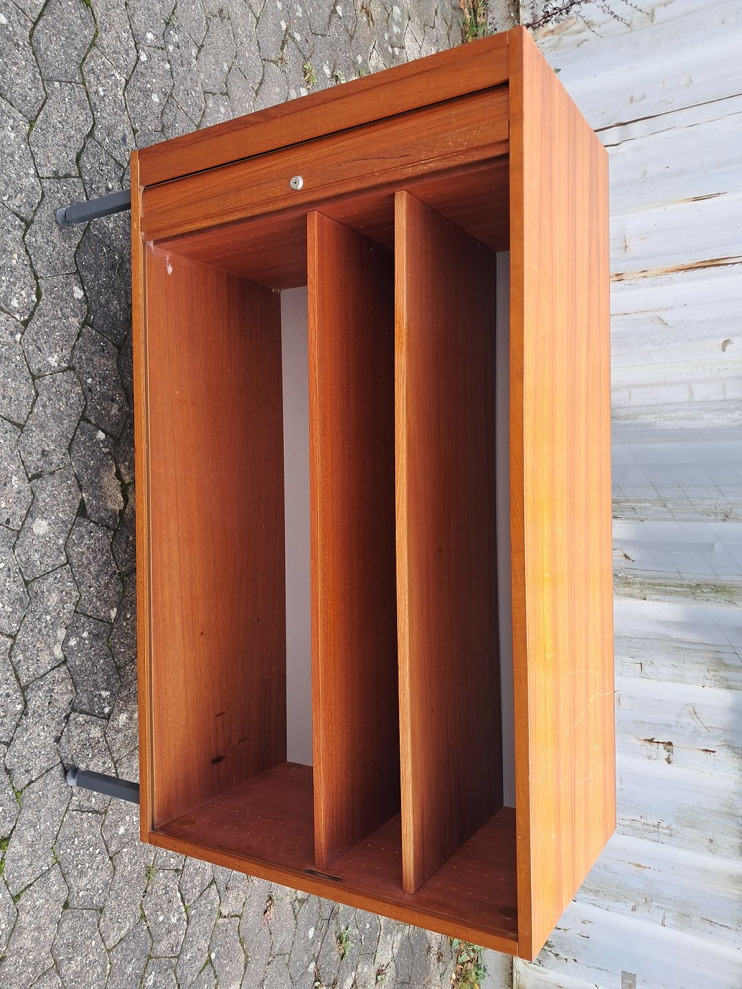 Jalousi skab i fineret teaktræ, fra 1970erne.