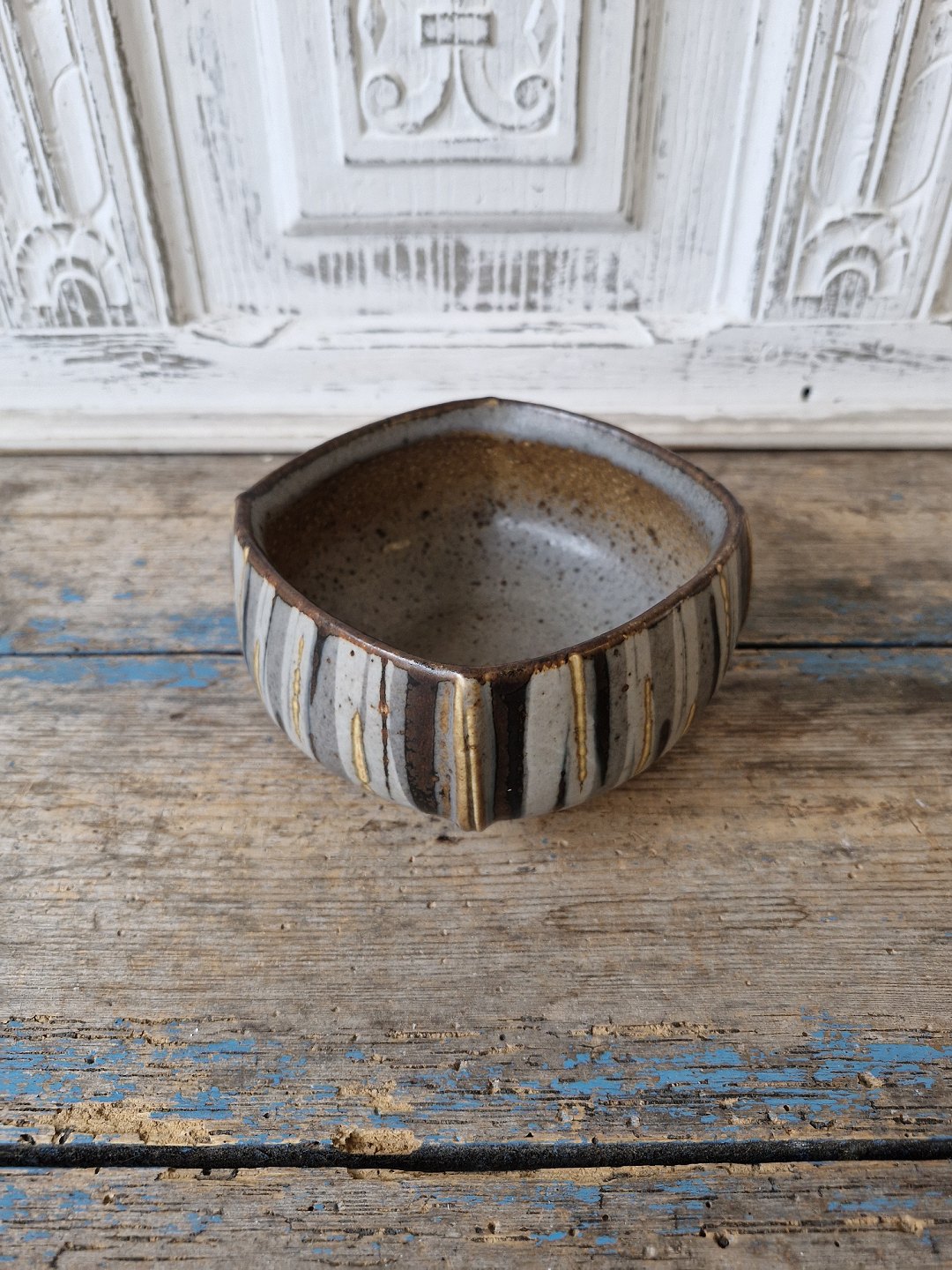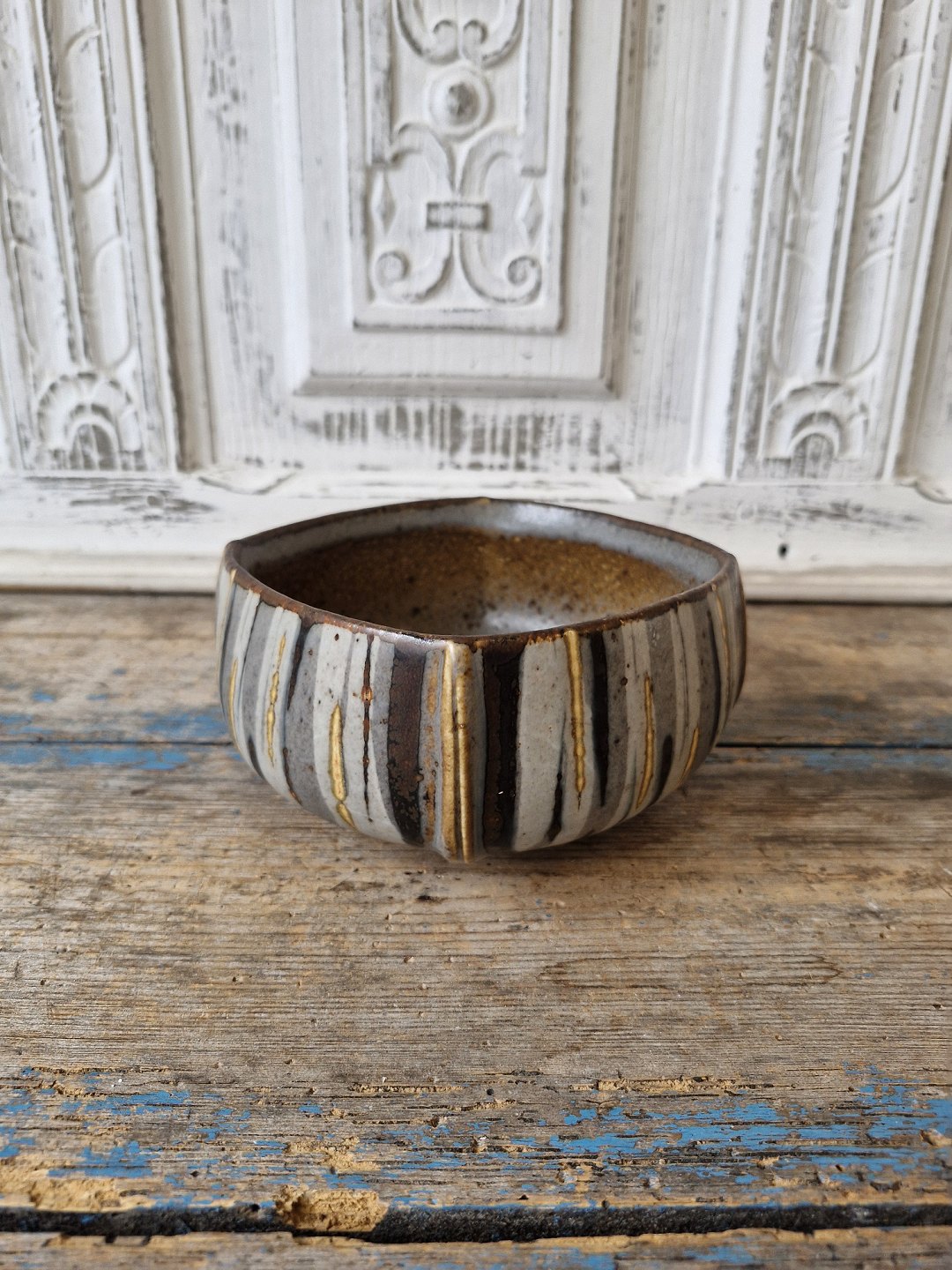 Ivan Weiss for Royal Copenhagen stoneware bowl with beautiful glaze in gray, black and brown shades no. 22562