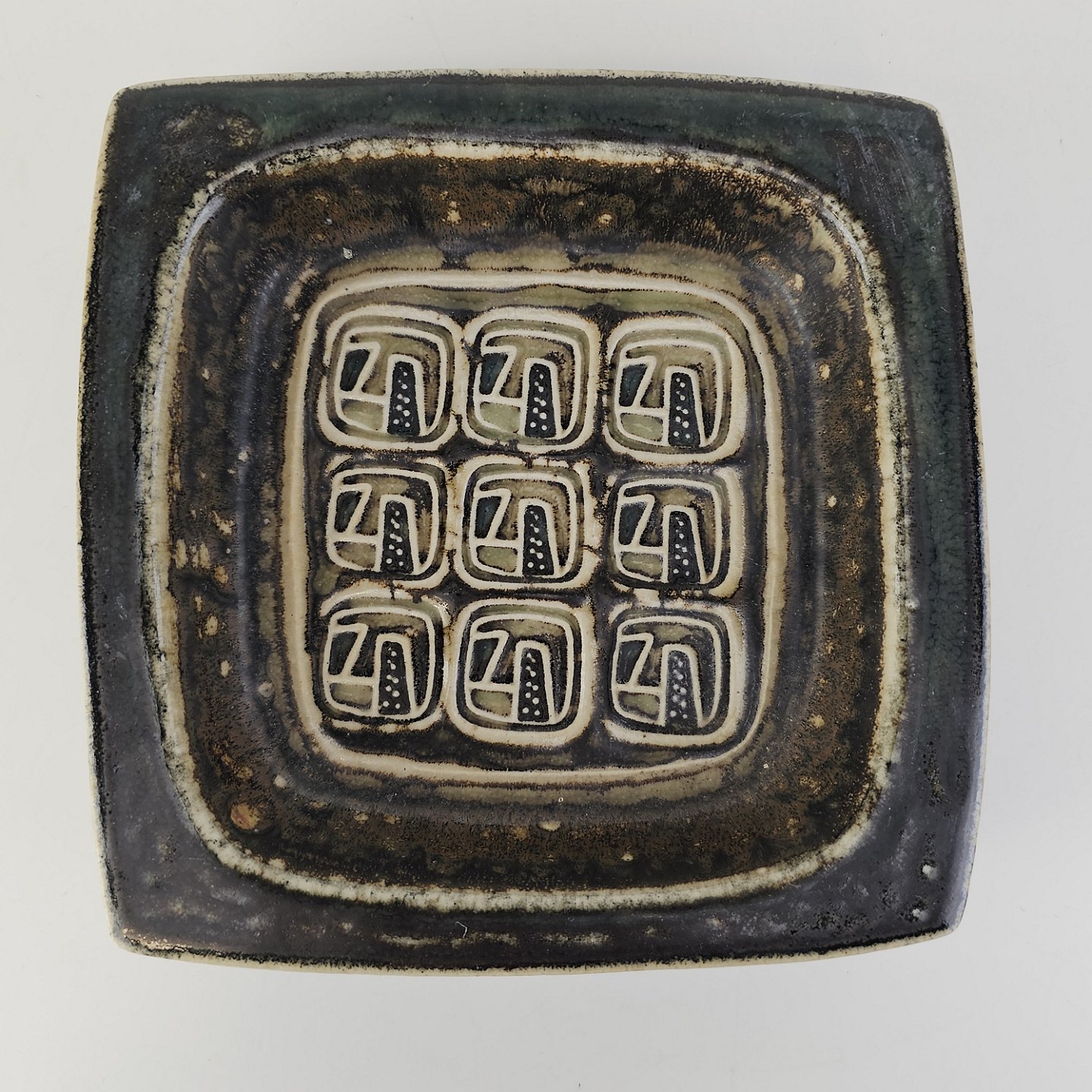Askebæger i stentøj med abstrakt dekoration i bunden
