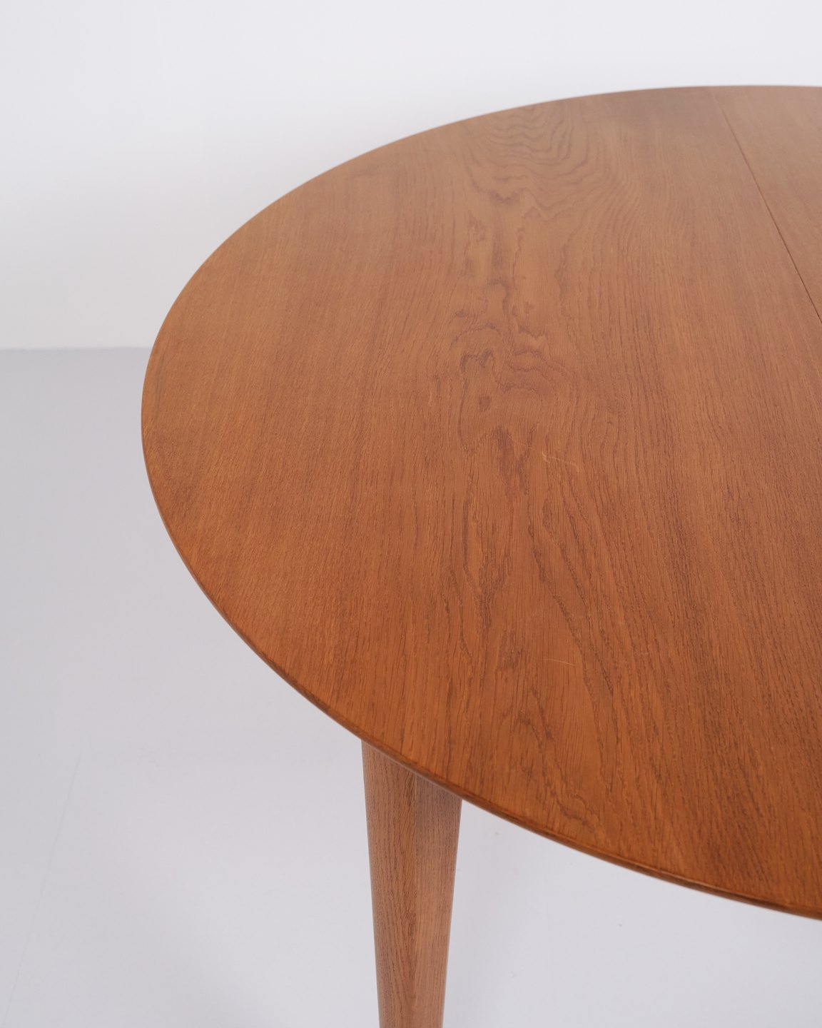 Round oak dining table from the 1960s. Danish design in a classic style.