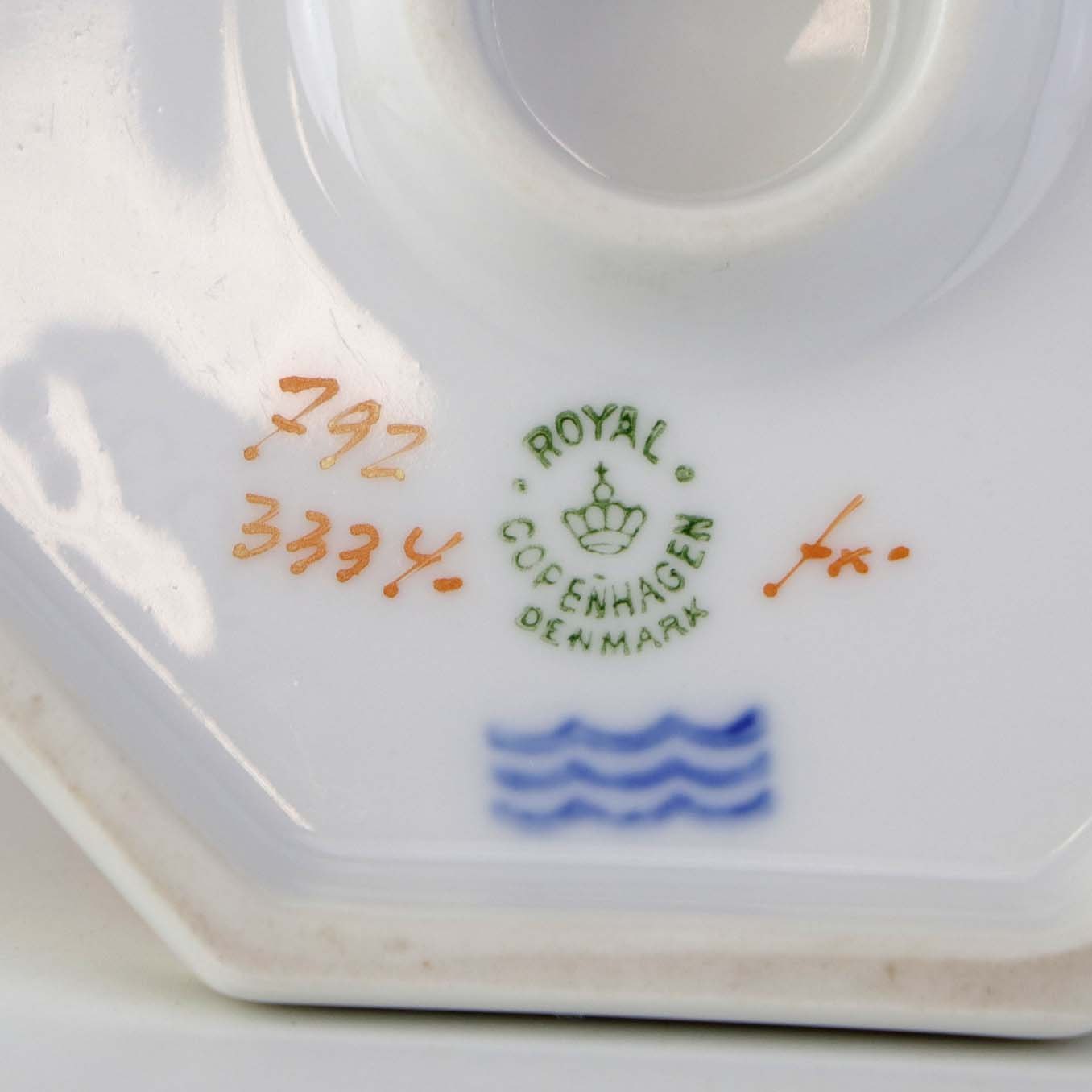 Lysestage i kongelig porcelæn fra stellet Jægersborg. Nr. 792/3334