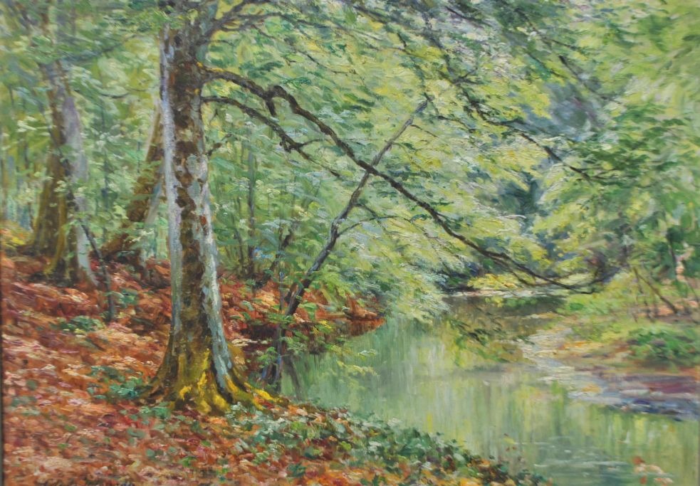 Gyde Petersen, Hans (1862 - 1943) Denmark: A stream, spring. Oil on canvas. Signed. 54 x 75 cm.