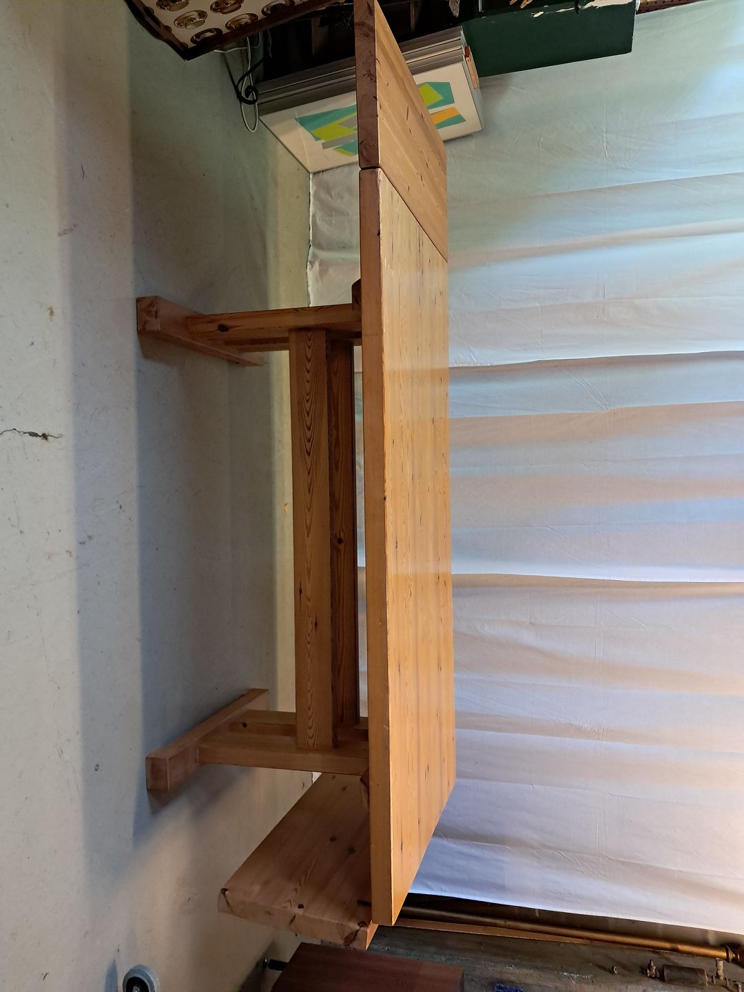 Spisebord i massivt fyrretræ med 2 klapper, fra 1980erne.