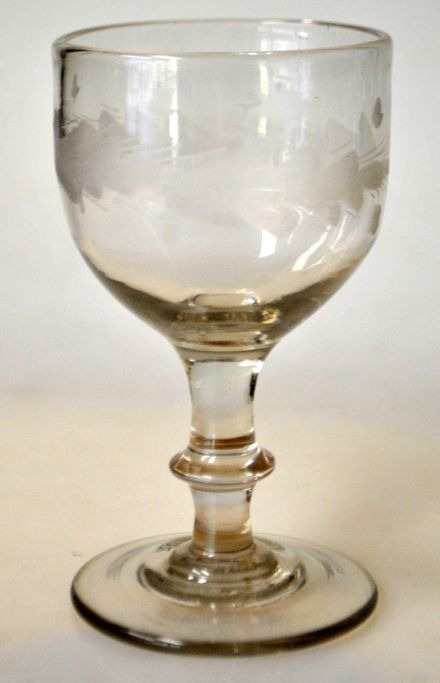 Wine glass with oak leaf cuts, 19th century Denmark.