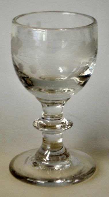 Schnapps glass with oak leaf cuts, 19th century Denmark