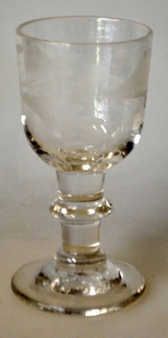 Schnapps glass with oak leaf cuts, 19th century Denmark