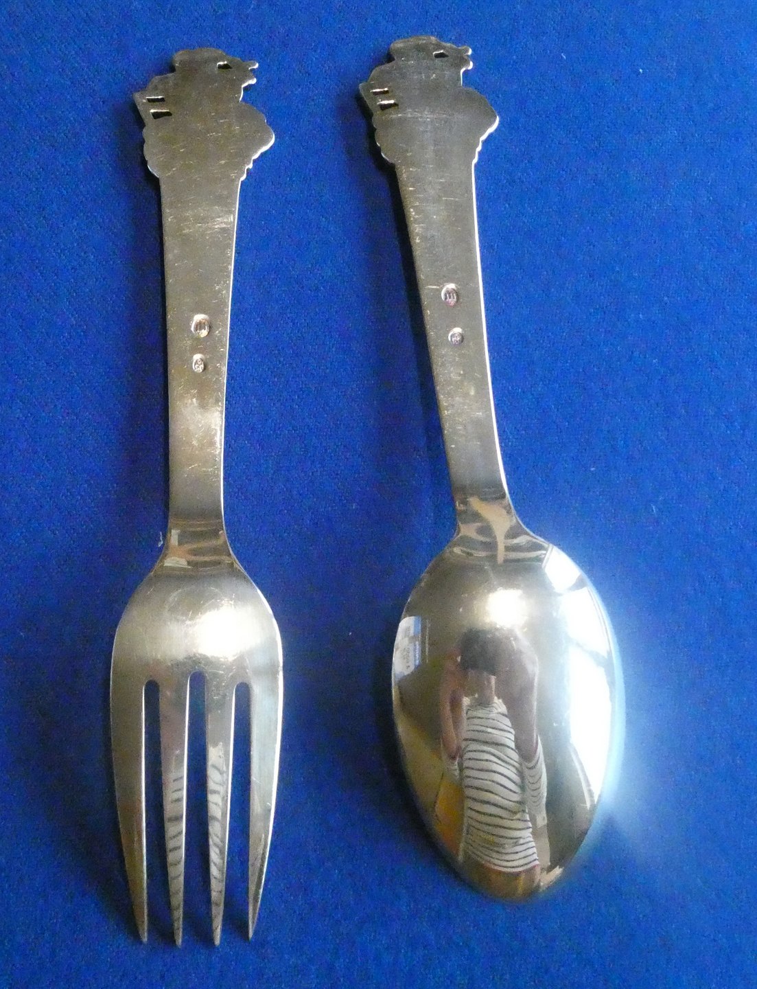 Set Baby's spoon and fork in a good used condition without engravings, and with intact gilding.