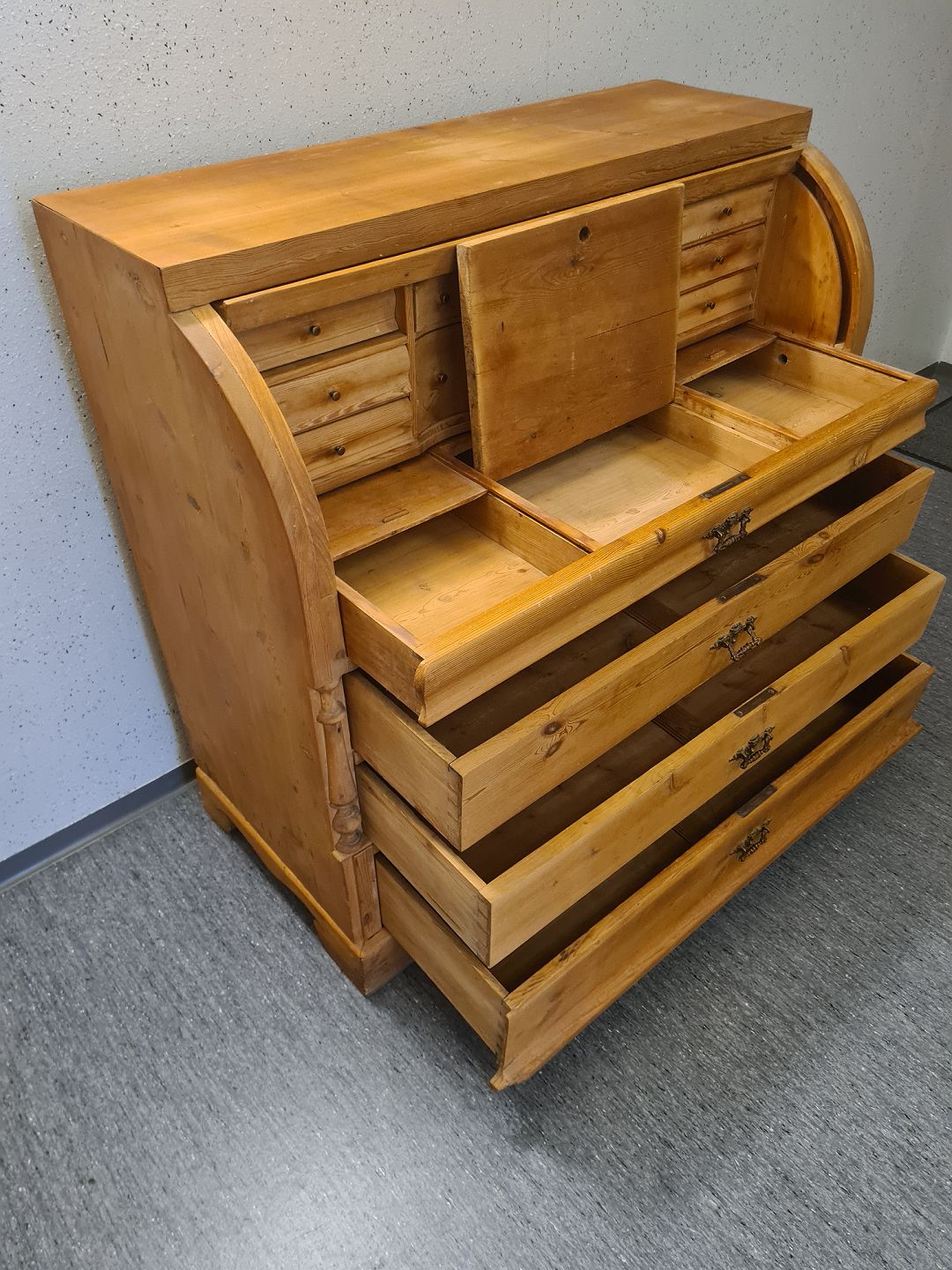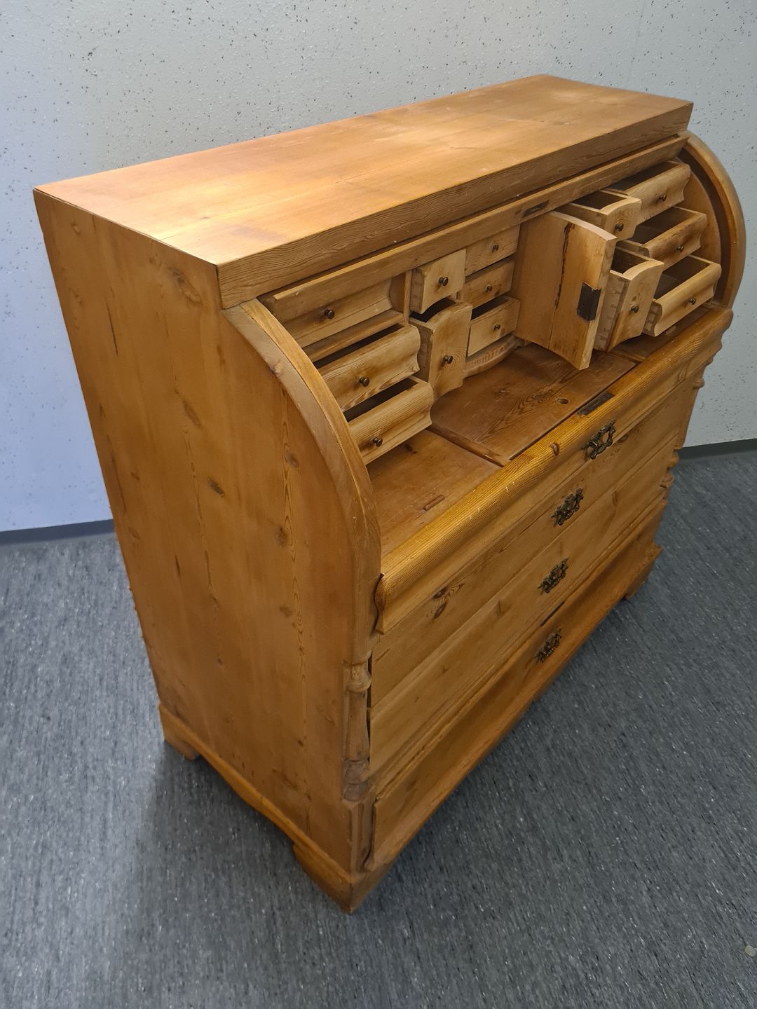Chatol fra 1930'erne i massiv fyrretræ. Fremstår pænt, ok velholdt og udmærket funktionsdygtigt uden de store brugsspor. Dog umiddelbart uden nøgle.