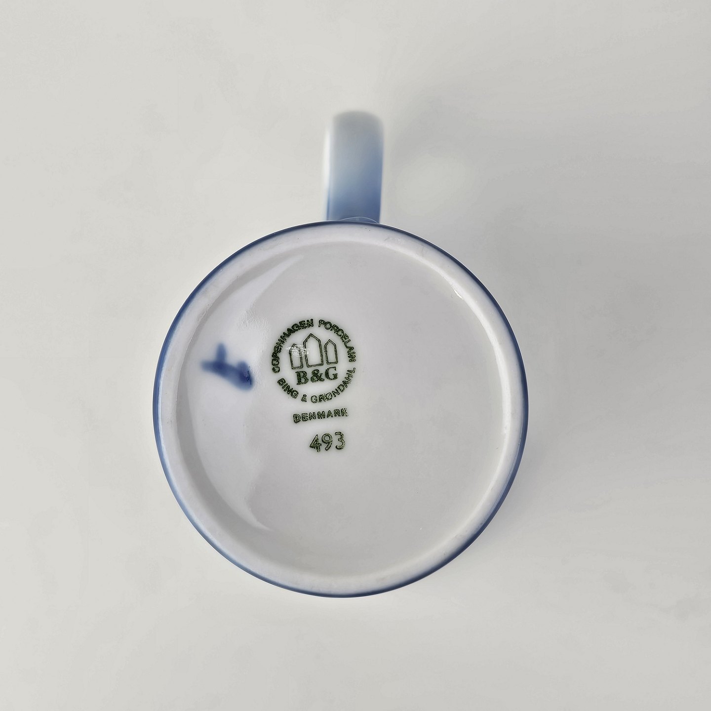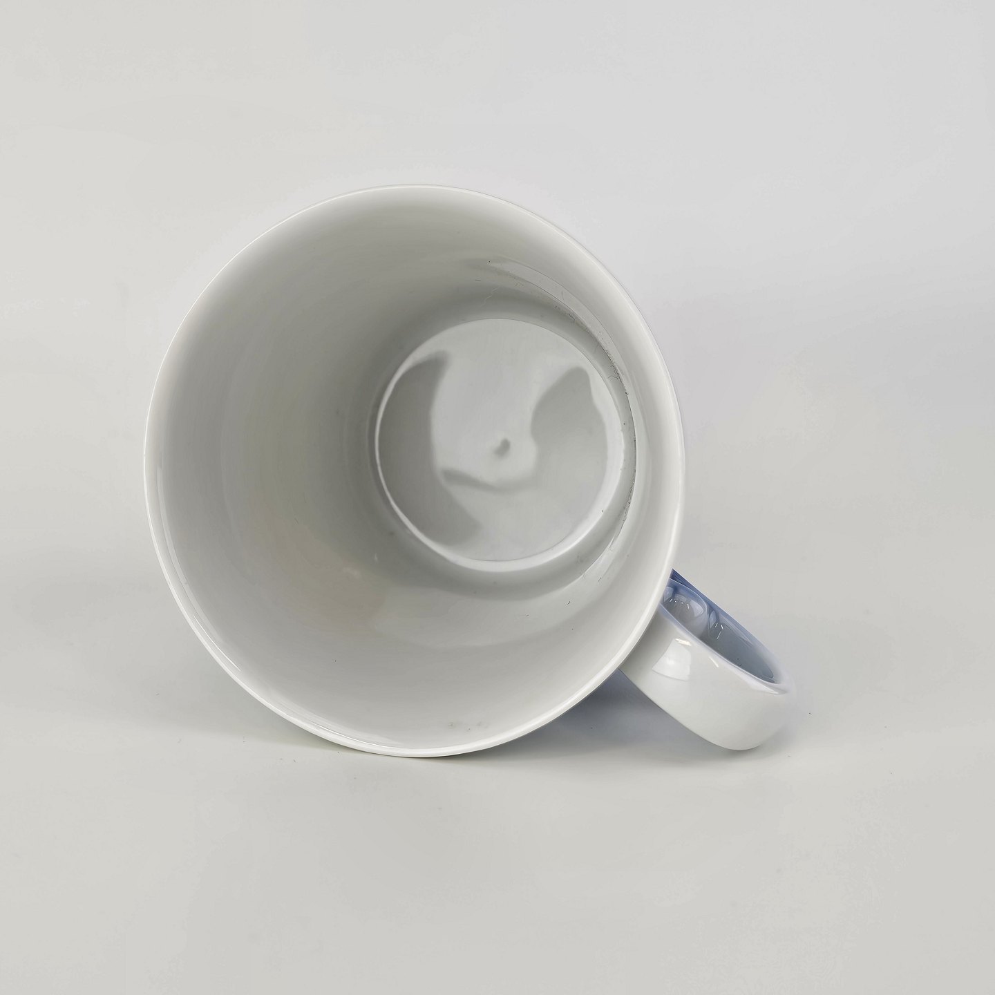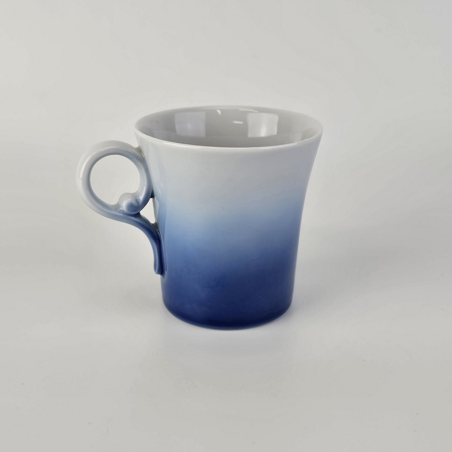 Julerose er hvidt porcelæn med gradueret blå farver, dekoreret med et motiv af en hvid julerose