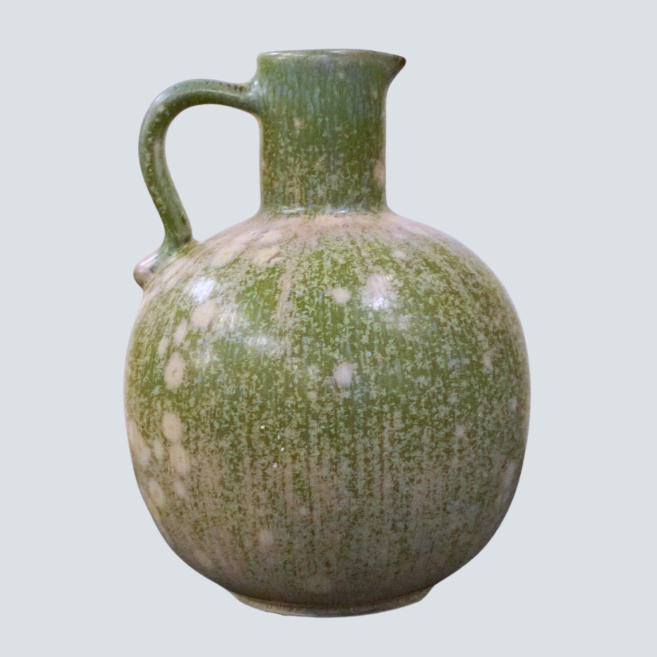 Bing & Grøndahl; Ceramic pitcher with handle, in green crystal glaze #T.304.