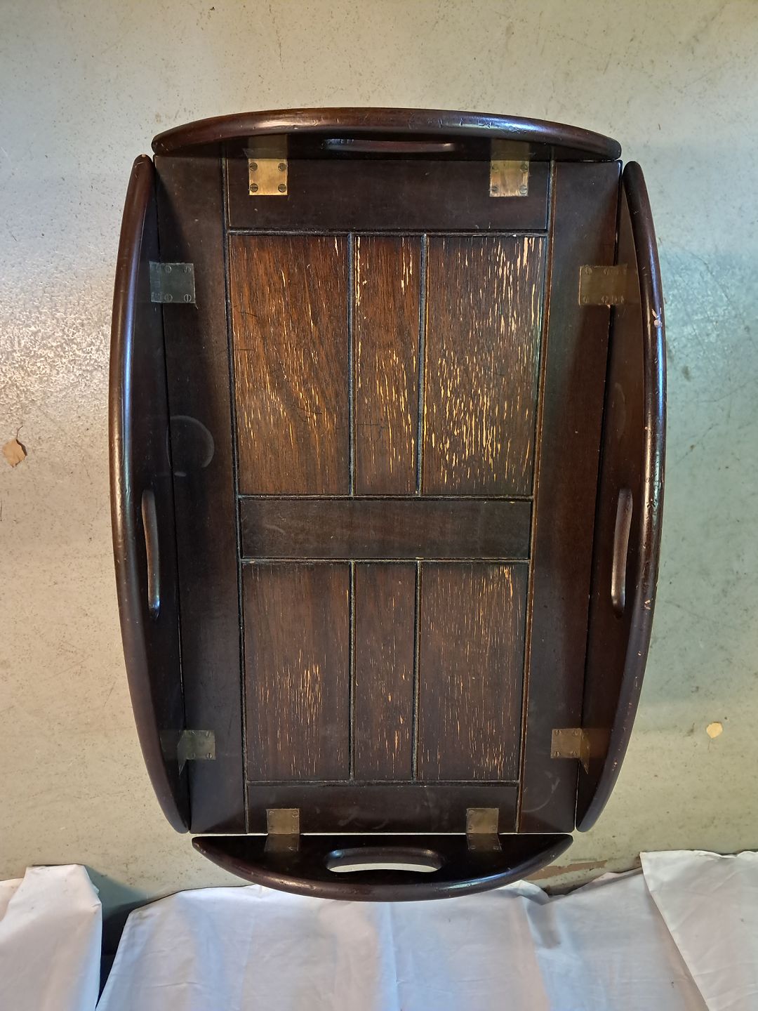 Butlers tray i fineret bøgetræ, fra 1980erne.