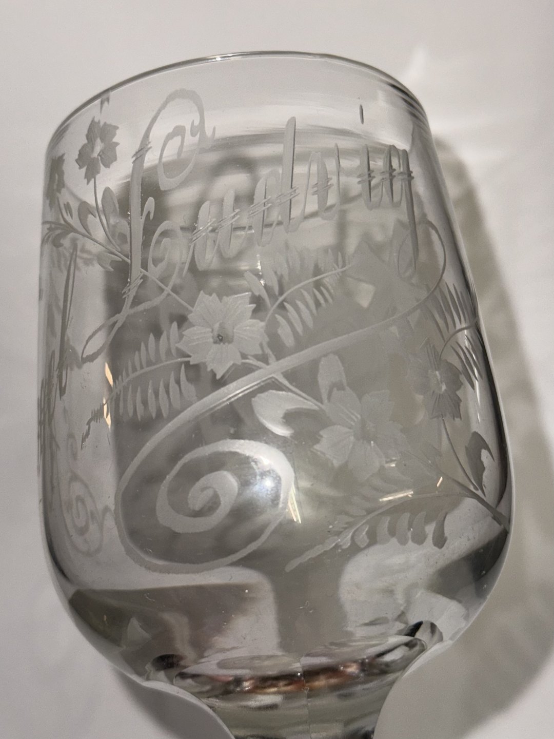 Aalborg Glasværk: Glas med graveret navn m.m.