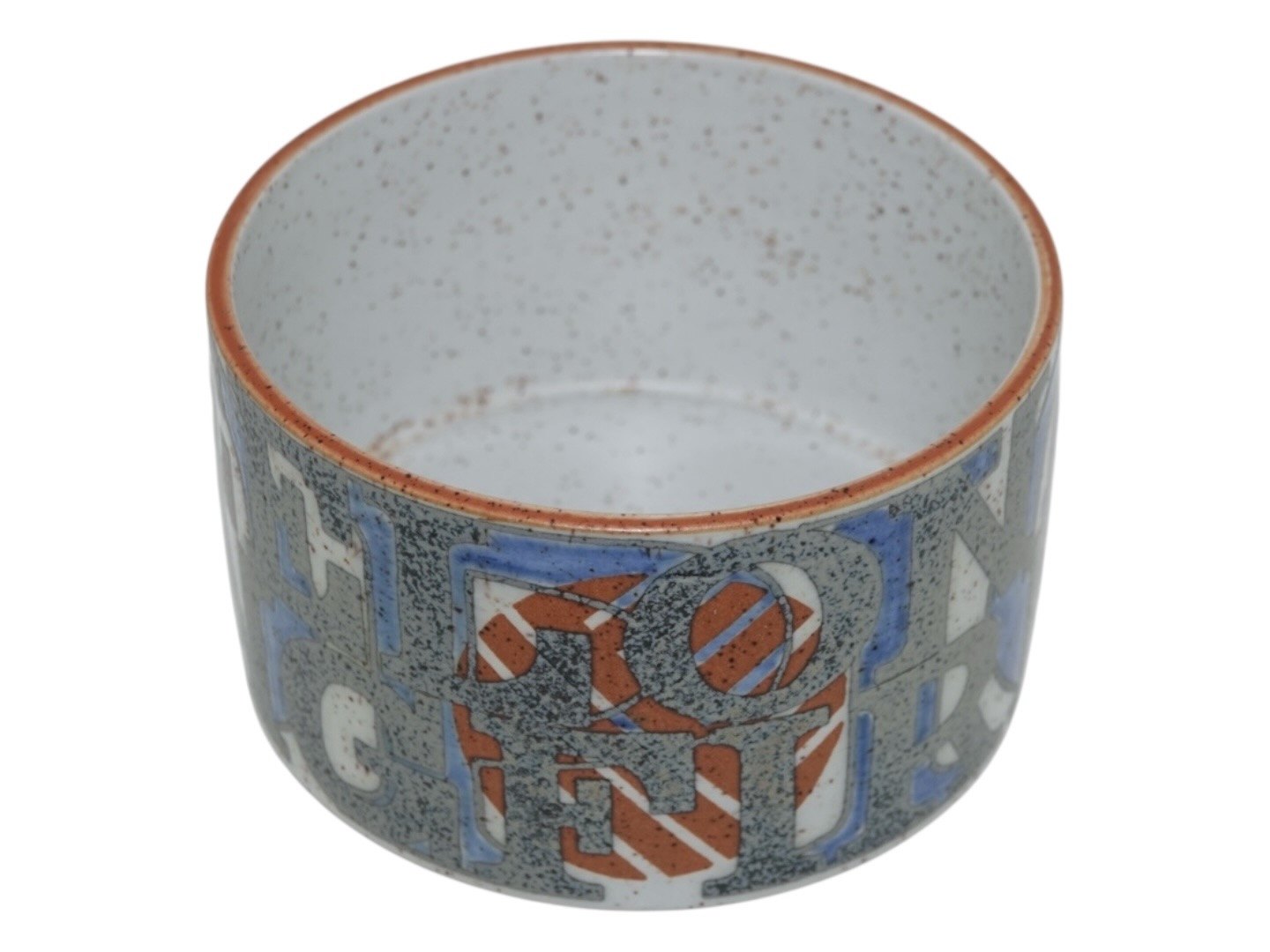 Royal Copenhagen art pottery, bowl with letters designed by Bo Kristiansen.