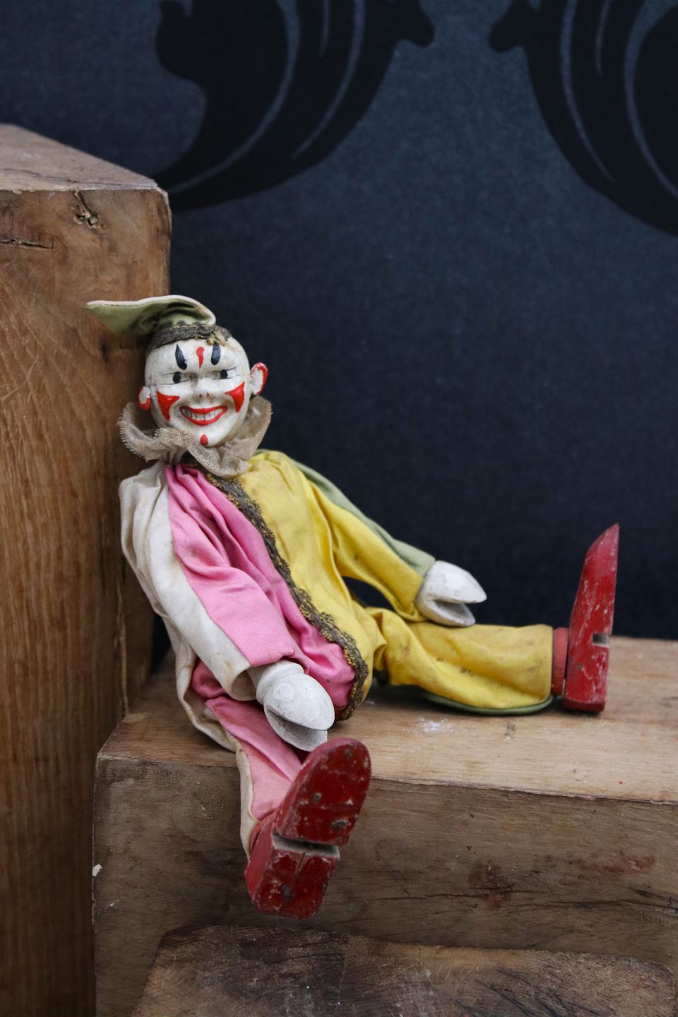 The clown has a really nice patina, has movable arms and legs. Height: 20cm.