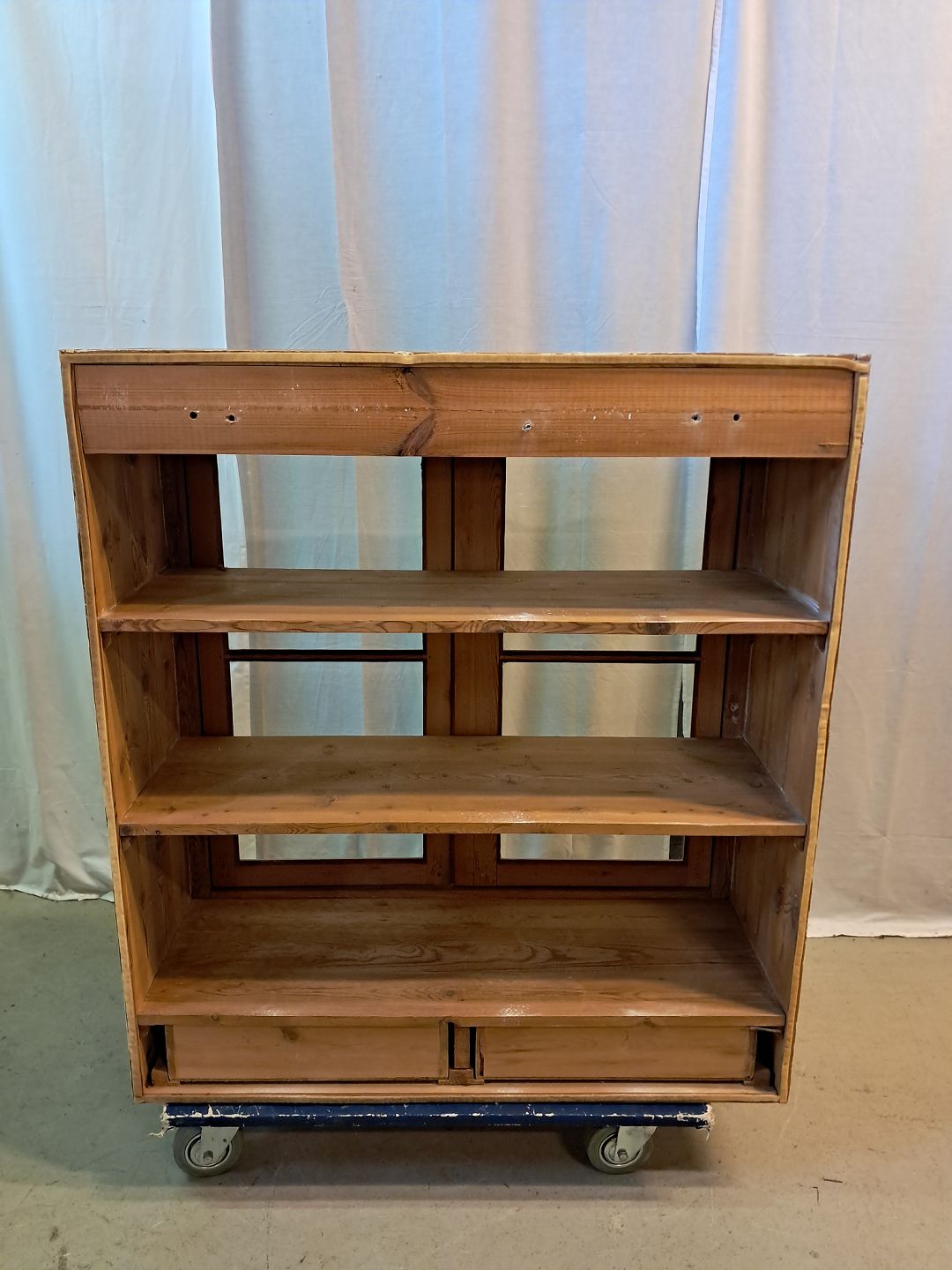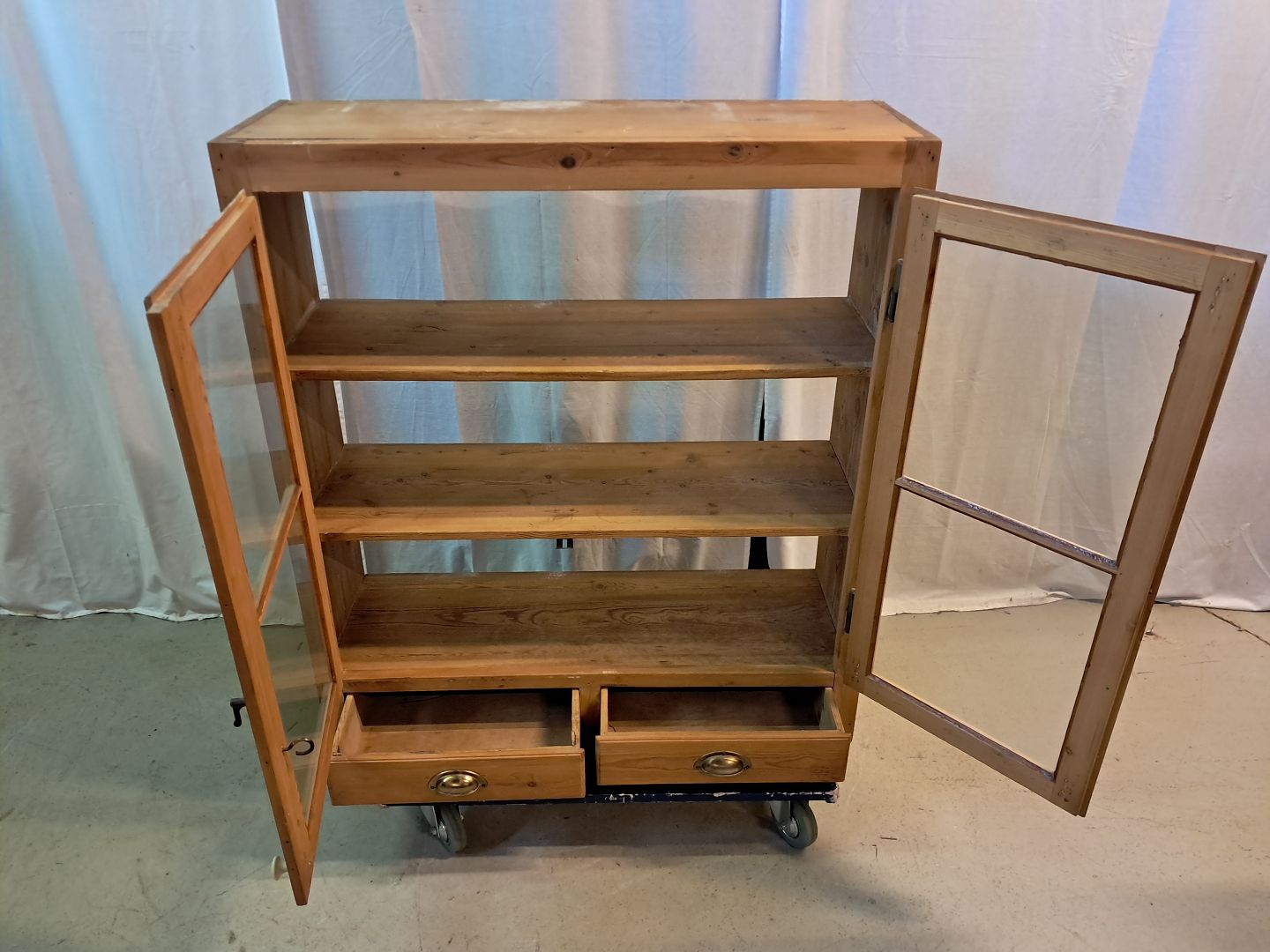 Gammelt køkkenskab i massivt fyrretræ, fra 1920erne.