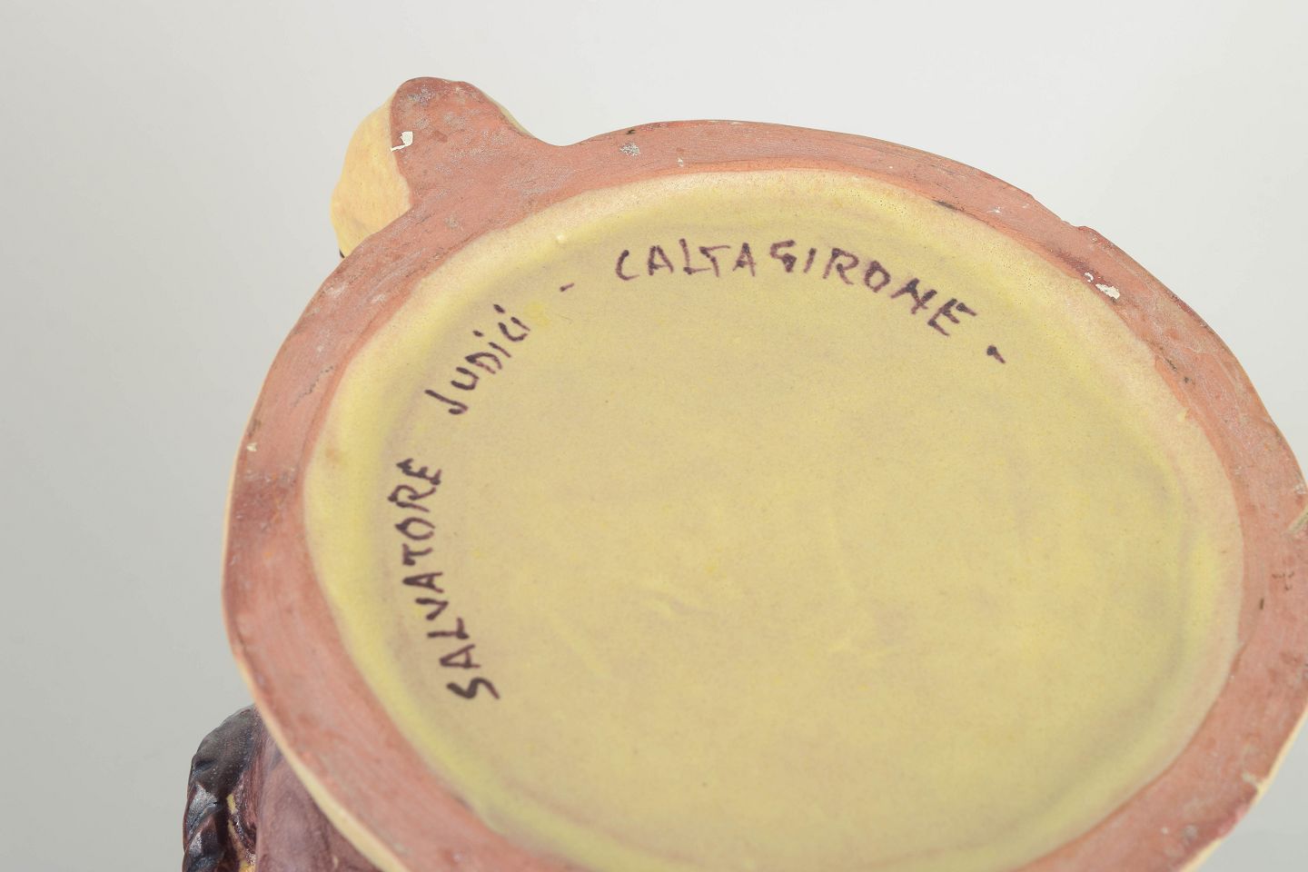 Ceramics from Caltagirone in Sicily are renowned for their hand-painted maiolica figures and vibrant decorations inspired by local legends and folk art. Head vases such as this one, known as Teste di Moro, symbolise love and jealousy and are among the most iconic forms of Sicilian ceramic artistry.