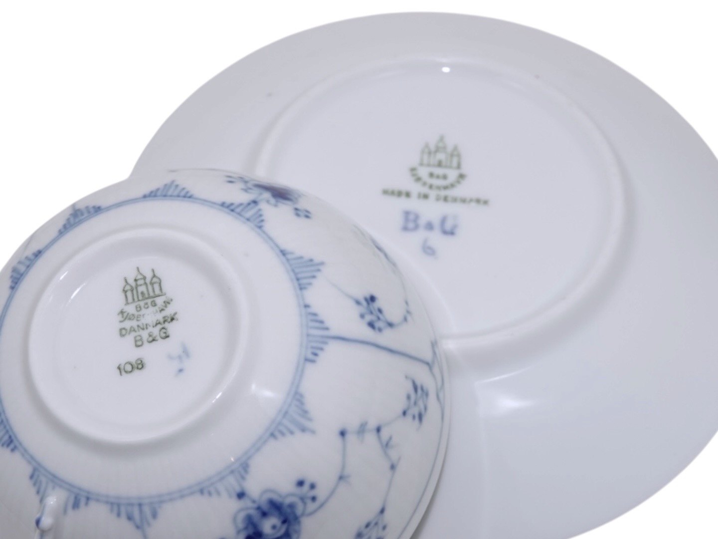 Bing & Grøndahl Blue Traditional (Blue Fluted Plain), teacup and saucer. The cup is decorated on the inside.