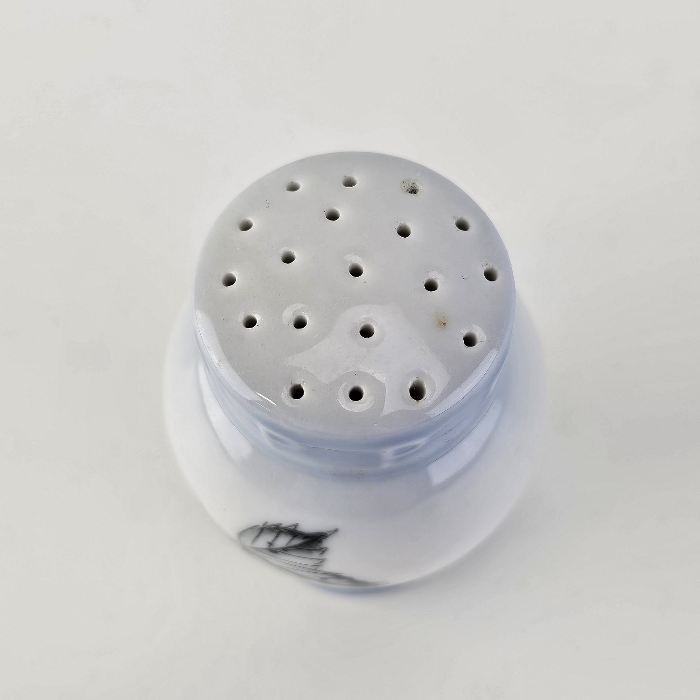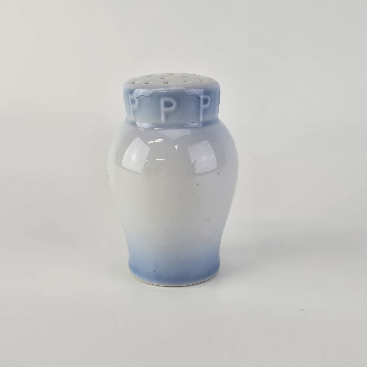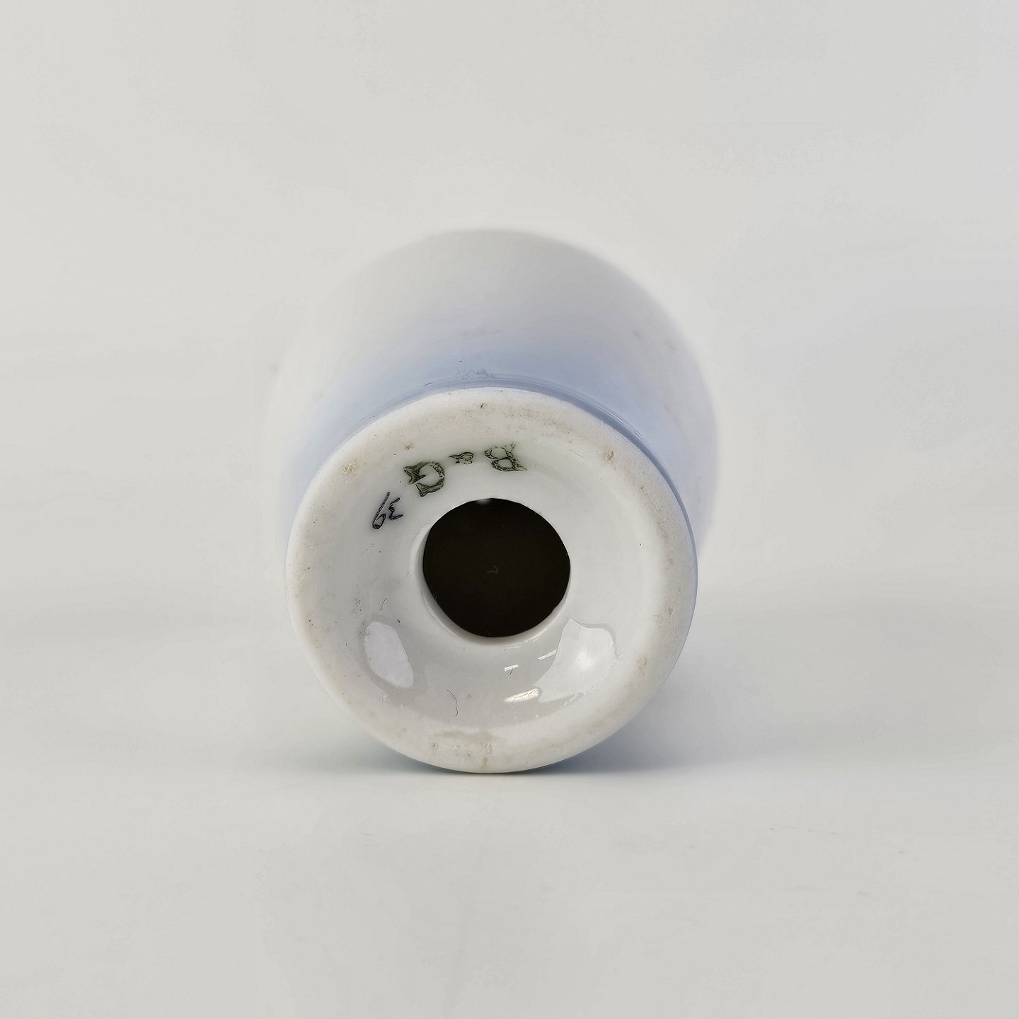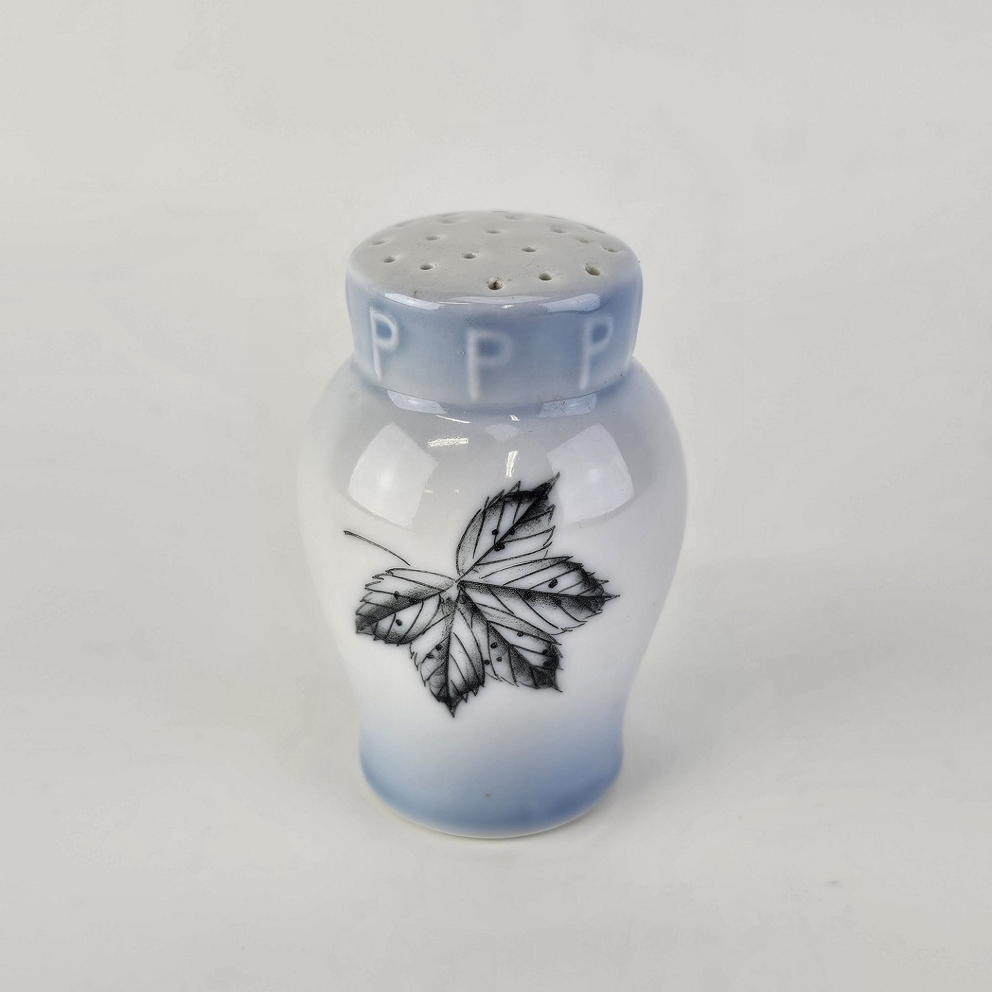 Løvfald er hvidt porcelæn som toner ud i blå, dekoreret med faldende blade i sort og rødt
