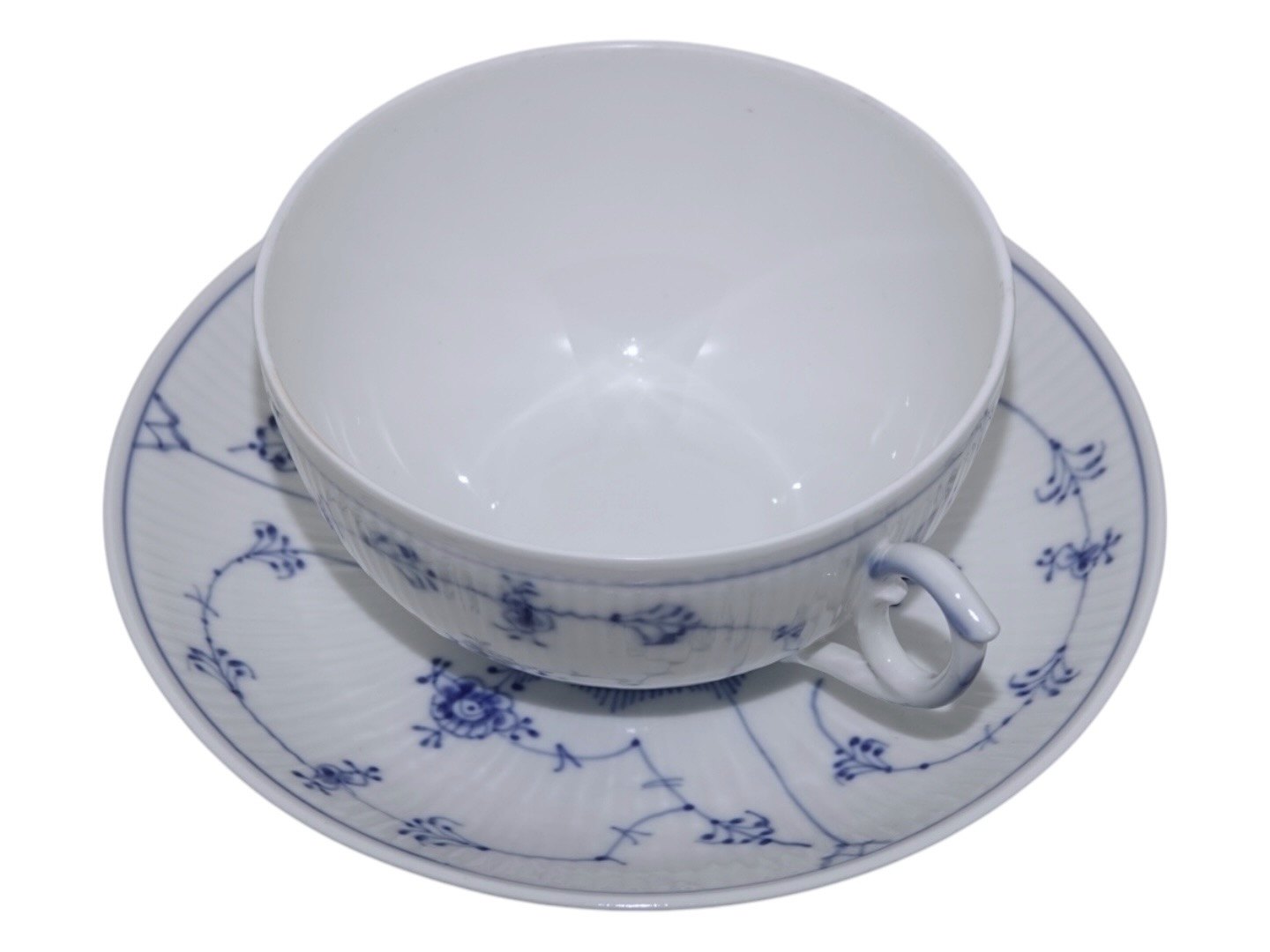 Royal Copenhagen Blue Fluted Plain, extra large tea cup (breakfast cup) with matching saucer.