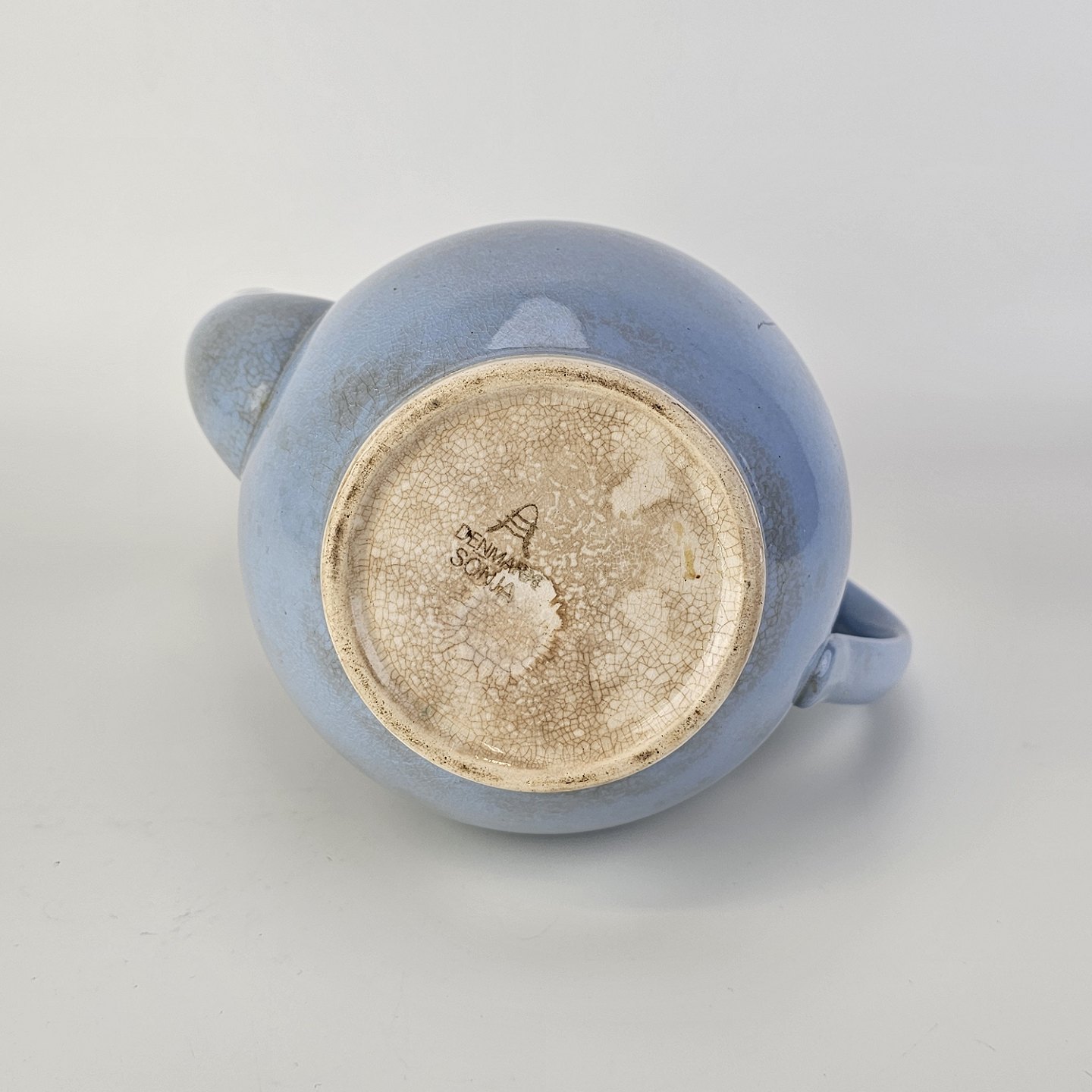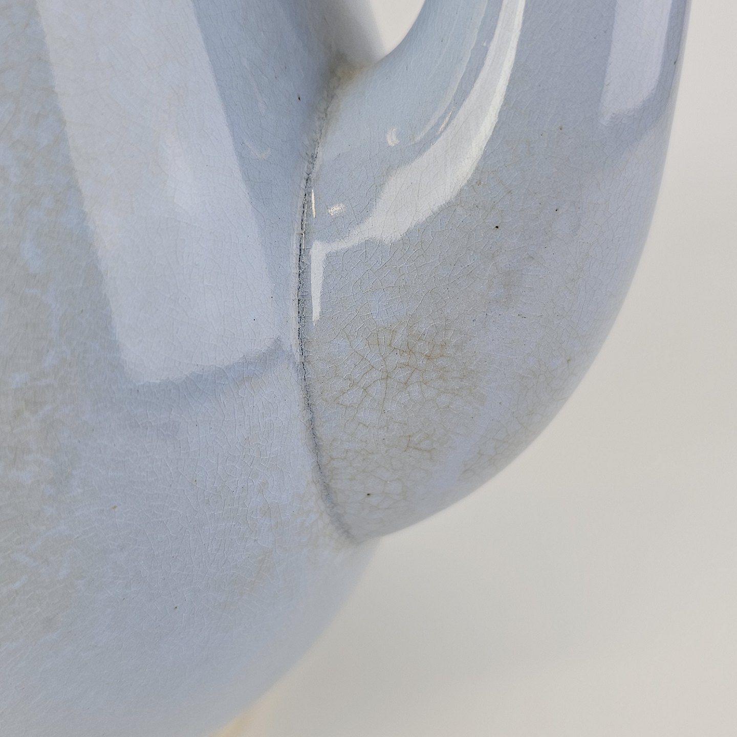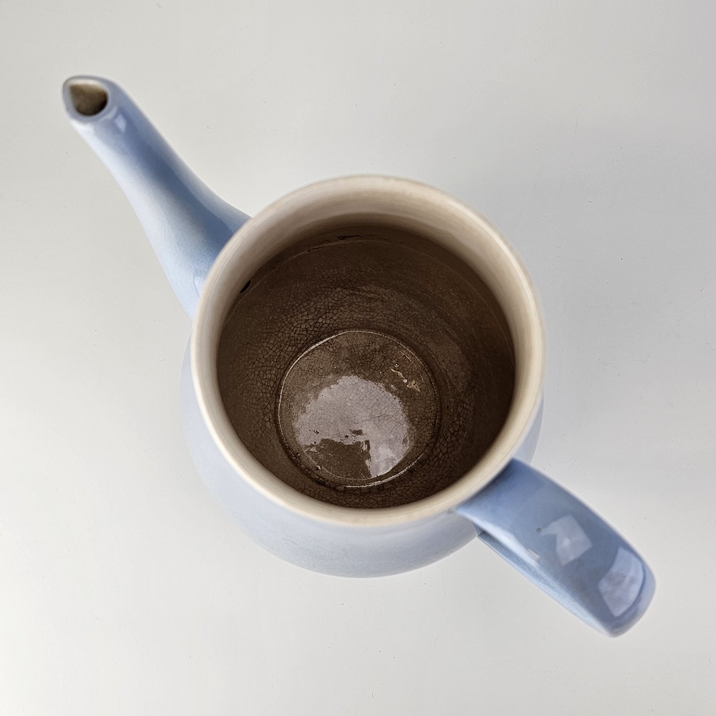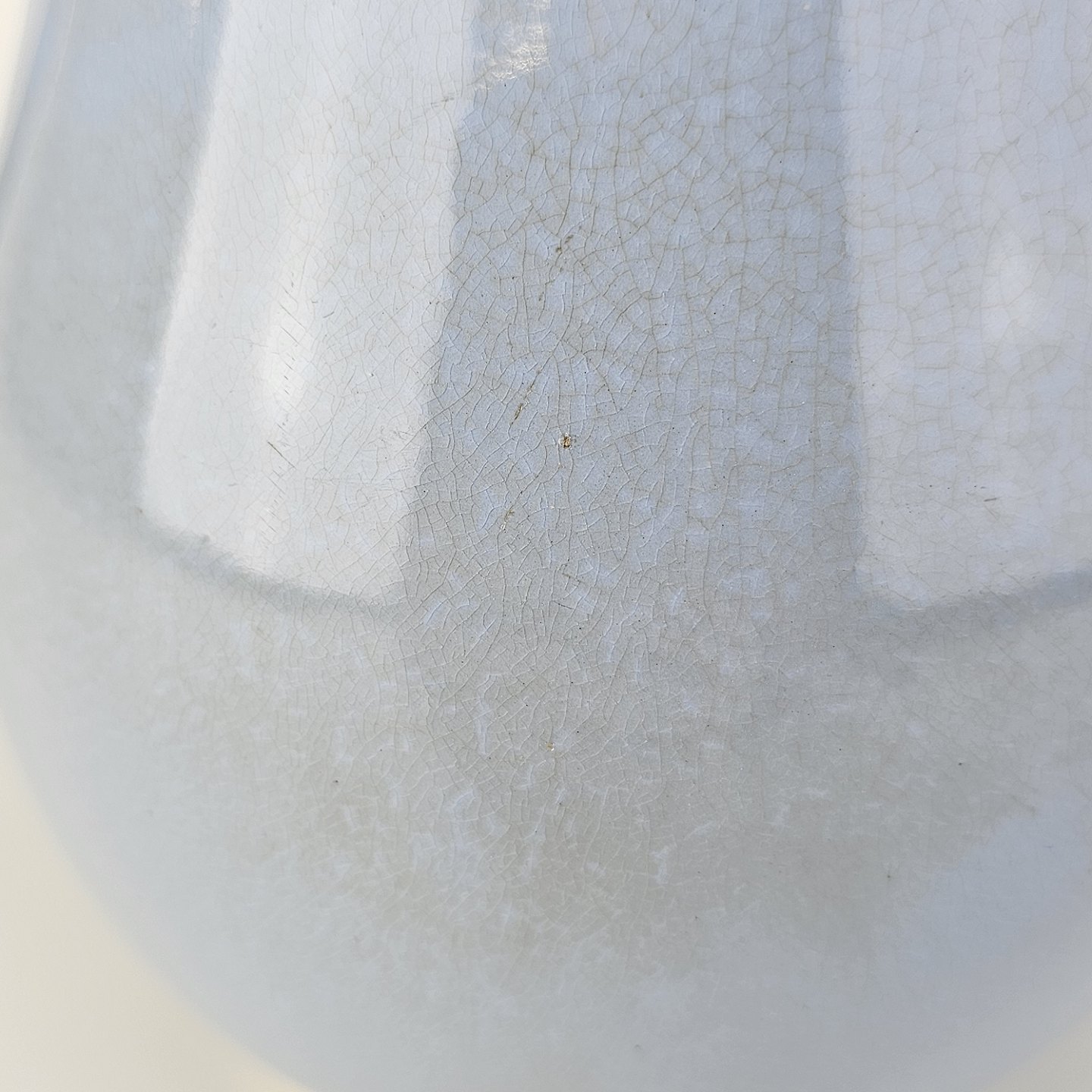 Fremstår med krakeleringer og misfarvninger i glasuren, og en sort streg