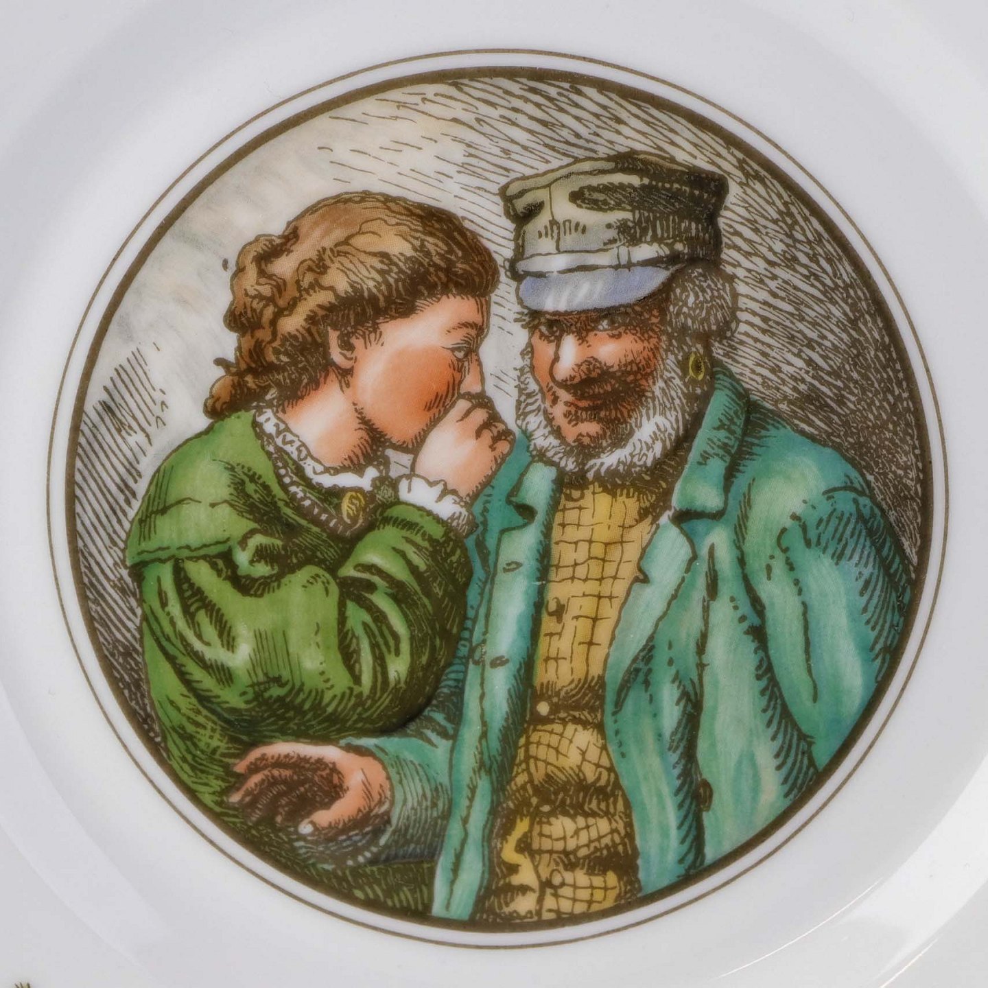 Teksten på tallerknen lyder - Og mor hun har så mange bud, hvert øjeblik skal Anders ud, og mor og Anders hvisker.