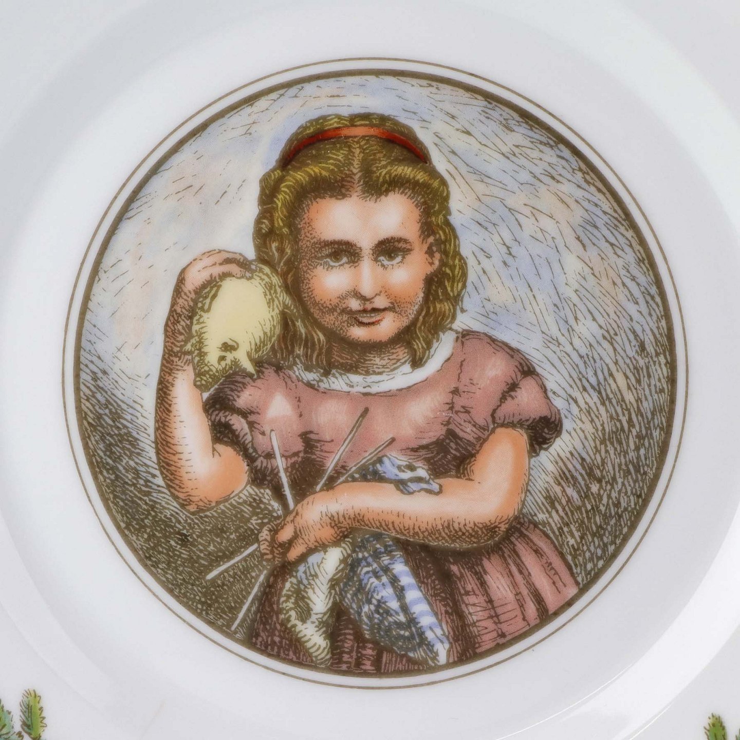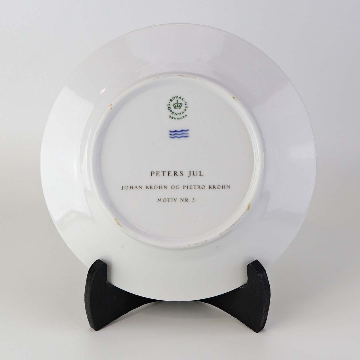 Flad desserttallerken i kongeligt porcelæn fra serien Peters Jul med motiv af søster Hanne. Nr. 3