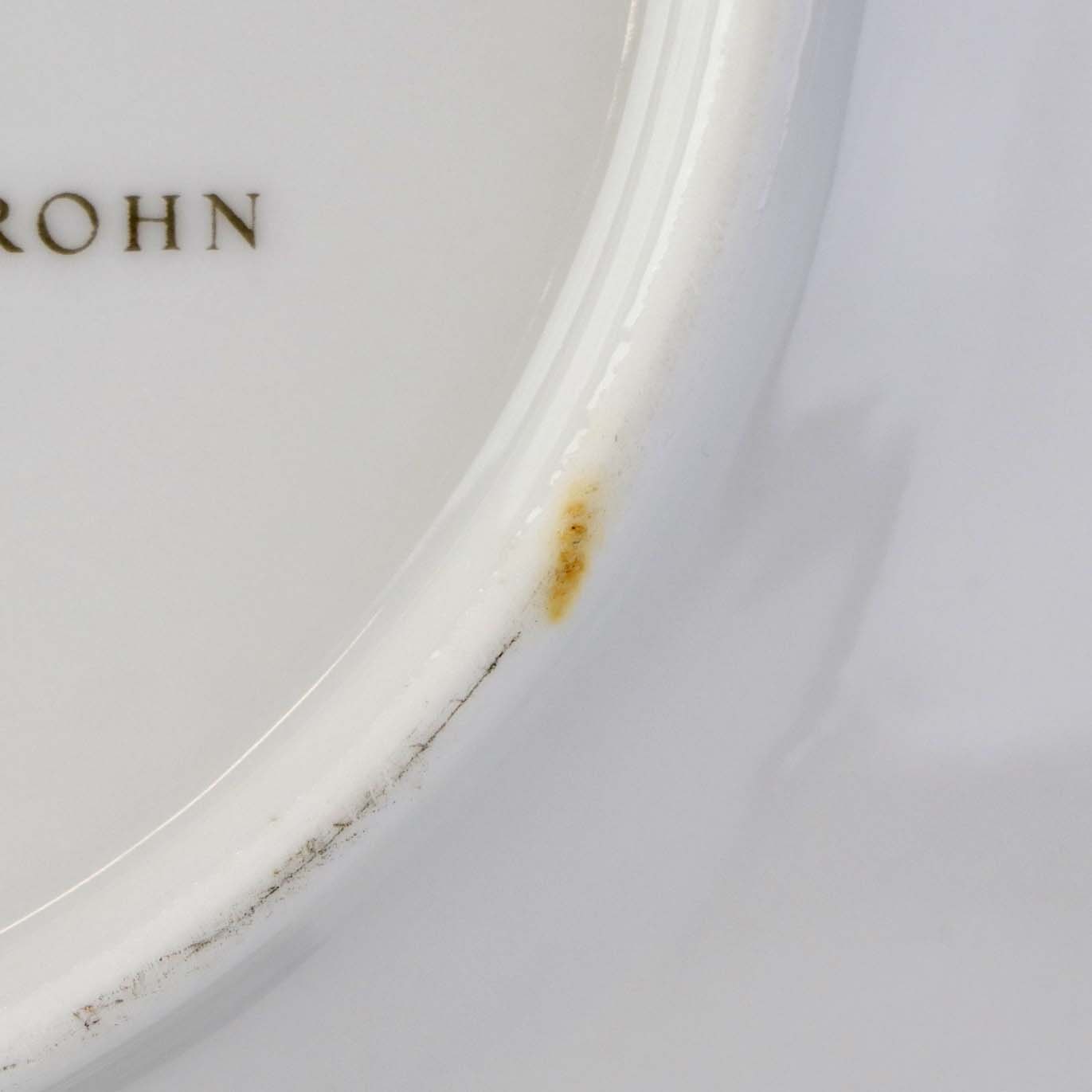 Fremstår med en overfladisk og ikke-gennemgående revne på front sidenm samt mørk plet på bagsiden.