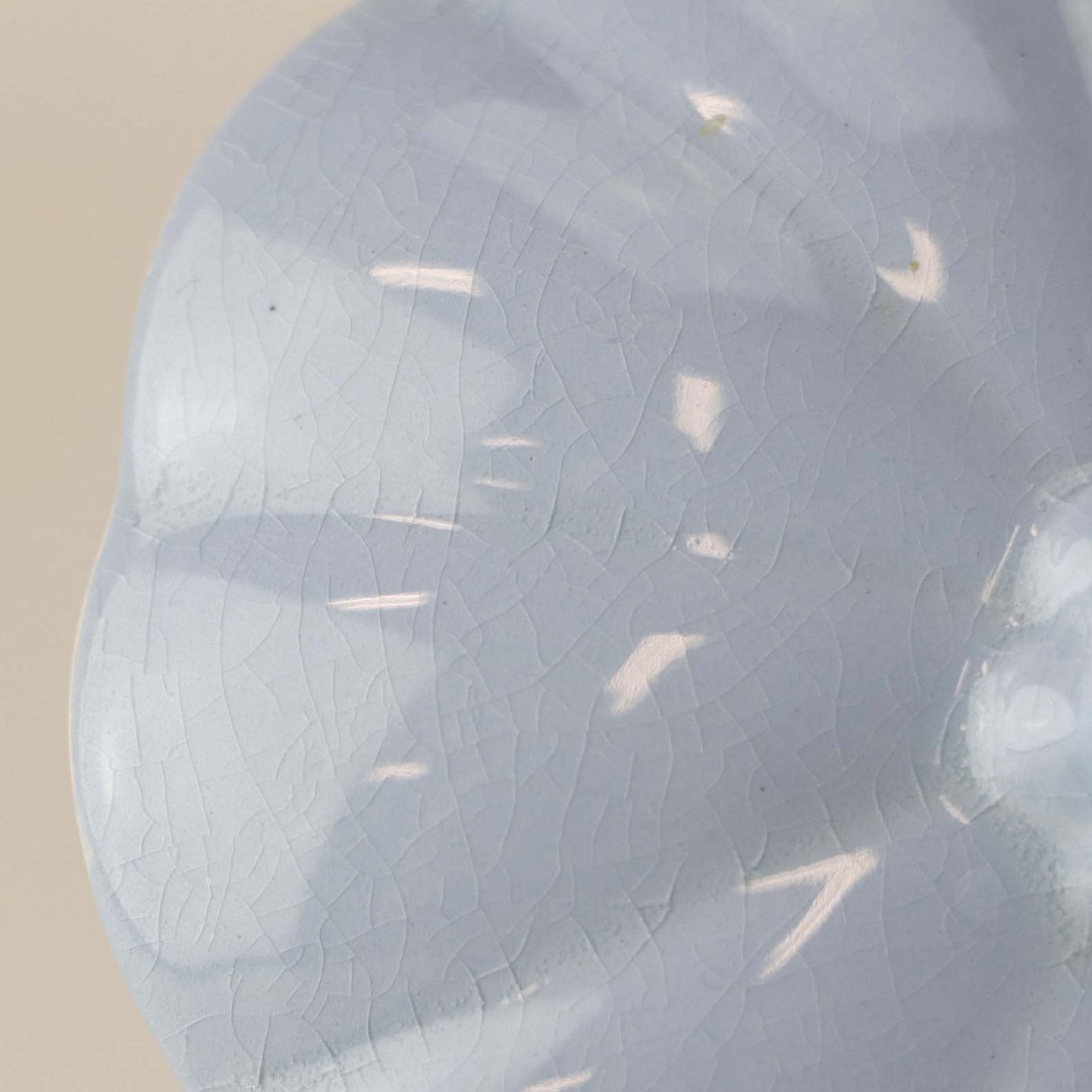 Fremstår med krakkeleringer i glasuren.