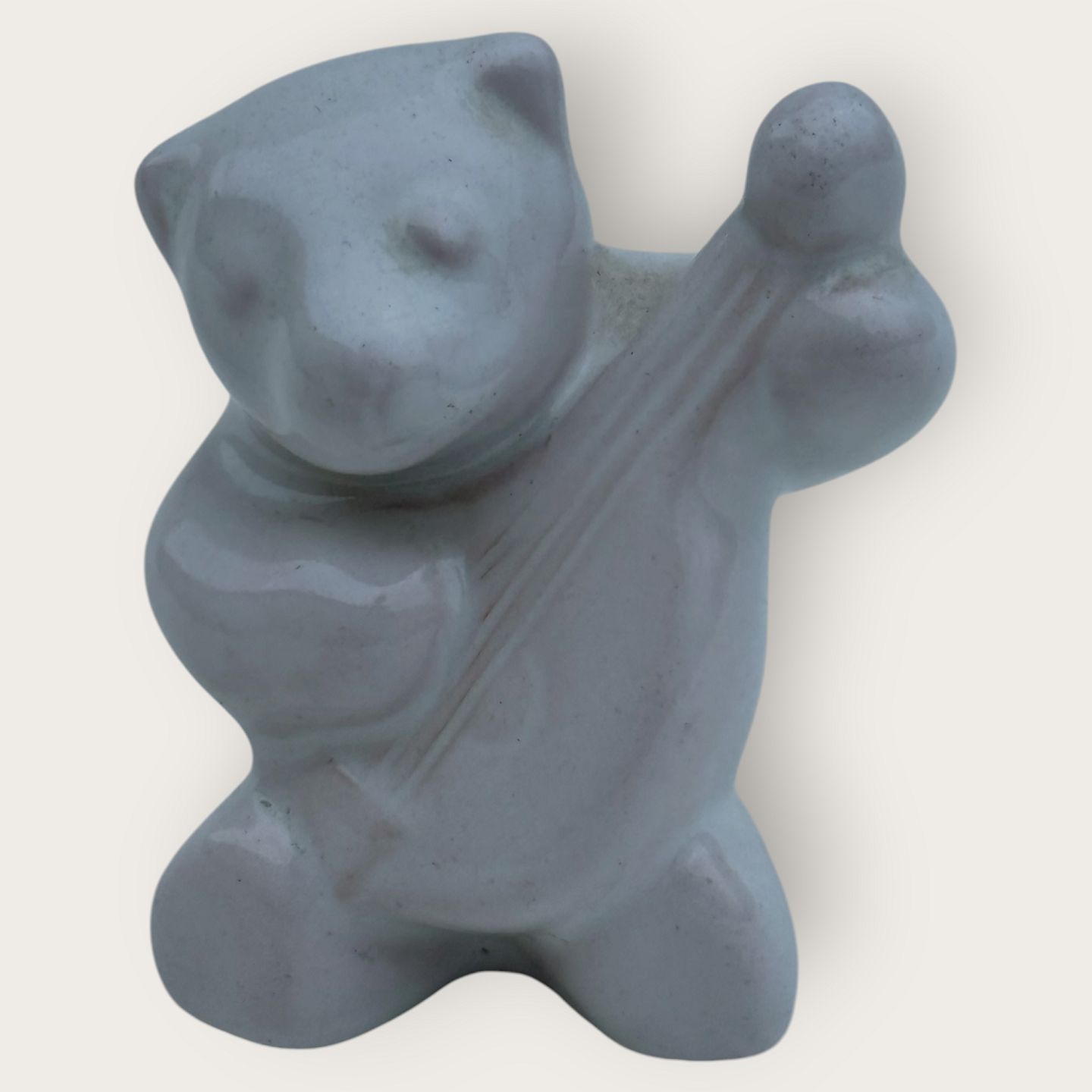 Bornholm pottery, Hjorth, Bear orchestra, guitar / mandolin, bear with white glaze, approx. 6.5x5cm *Good condition*