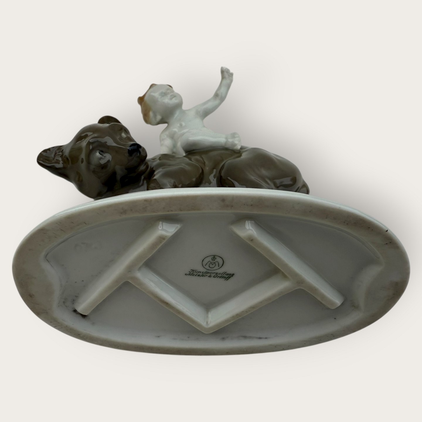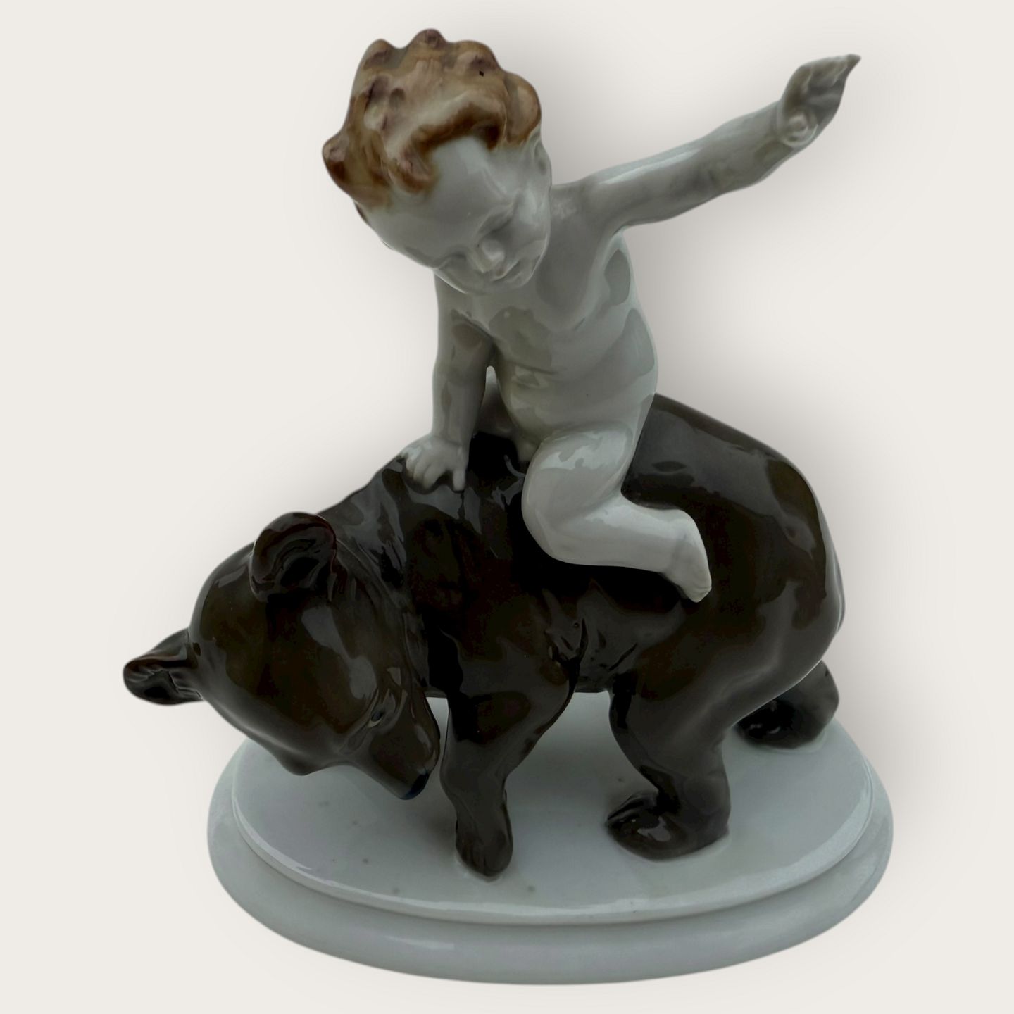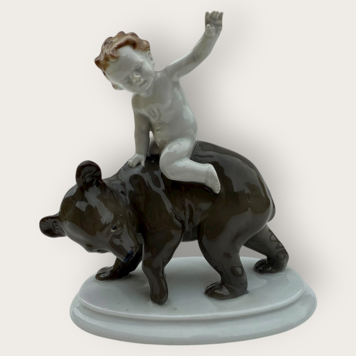 Metzler & Ortloff, Boy on bear, approx. 12x14.5cm *fine condition*