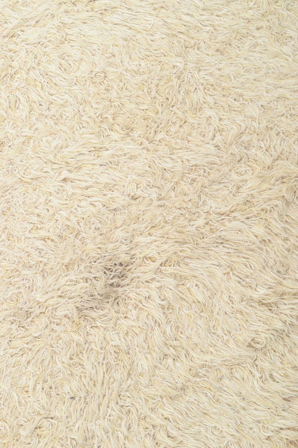 Hand-knotted rya carpet in natural white wool, produced by Blekinge Rya. A typical Scandinavian design from the period with a dense pile and minimalist expression, highlighting the warmth and tactile beauty of the material. The piece reflects the simple elegance and fine craftsmanship characteristic of Swedish textile design of the era.