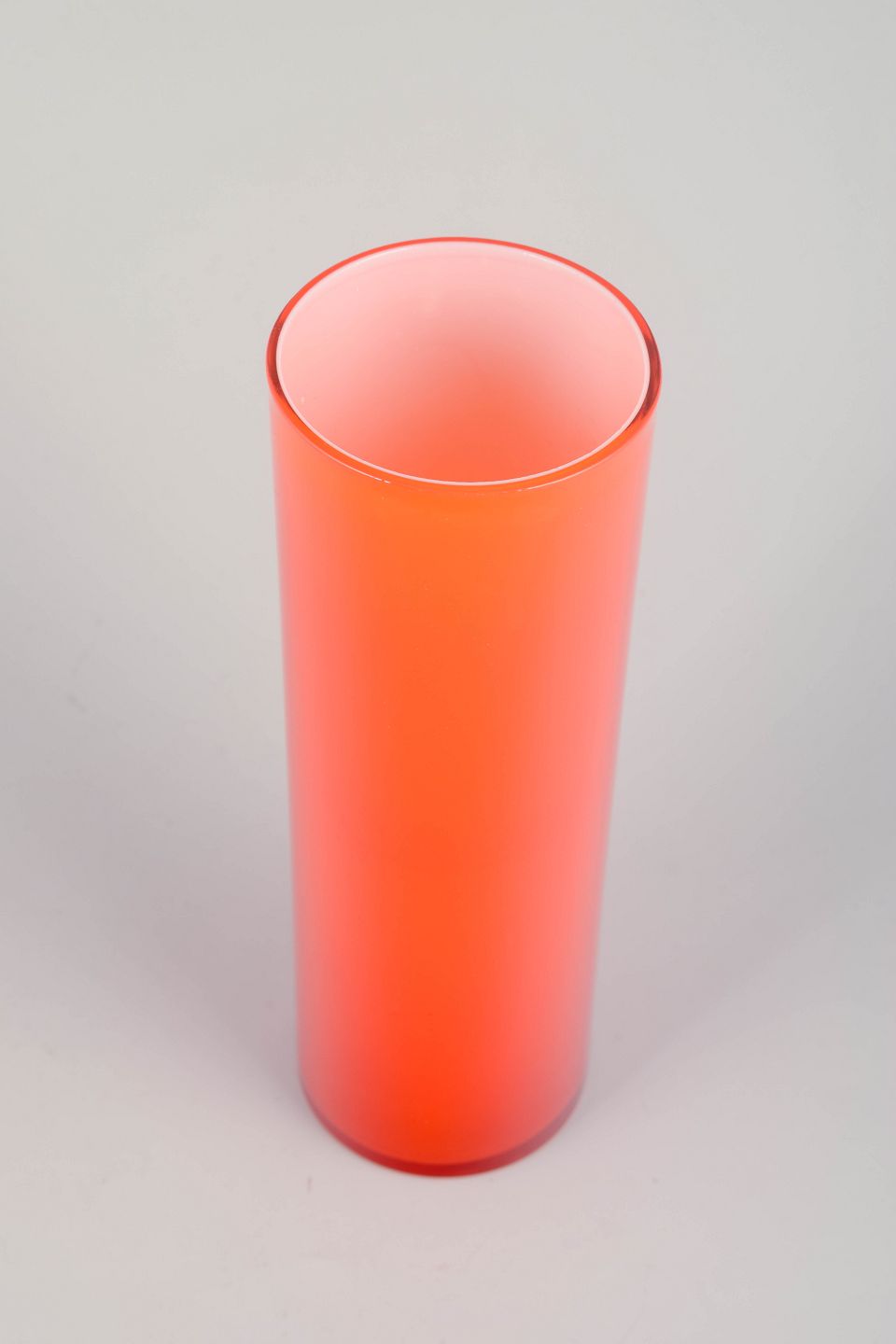 Elegant mouth-blown vase in bright orange glass with a tall, cylindrical shape. A typical example of Swedish glass art from the 1970s, where clean lines and vivid colour defined the design language of the era.